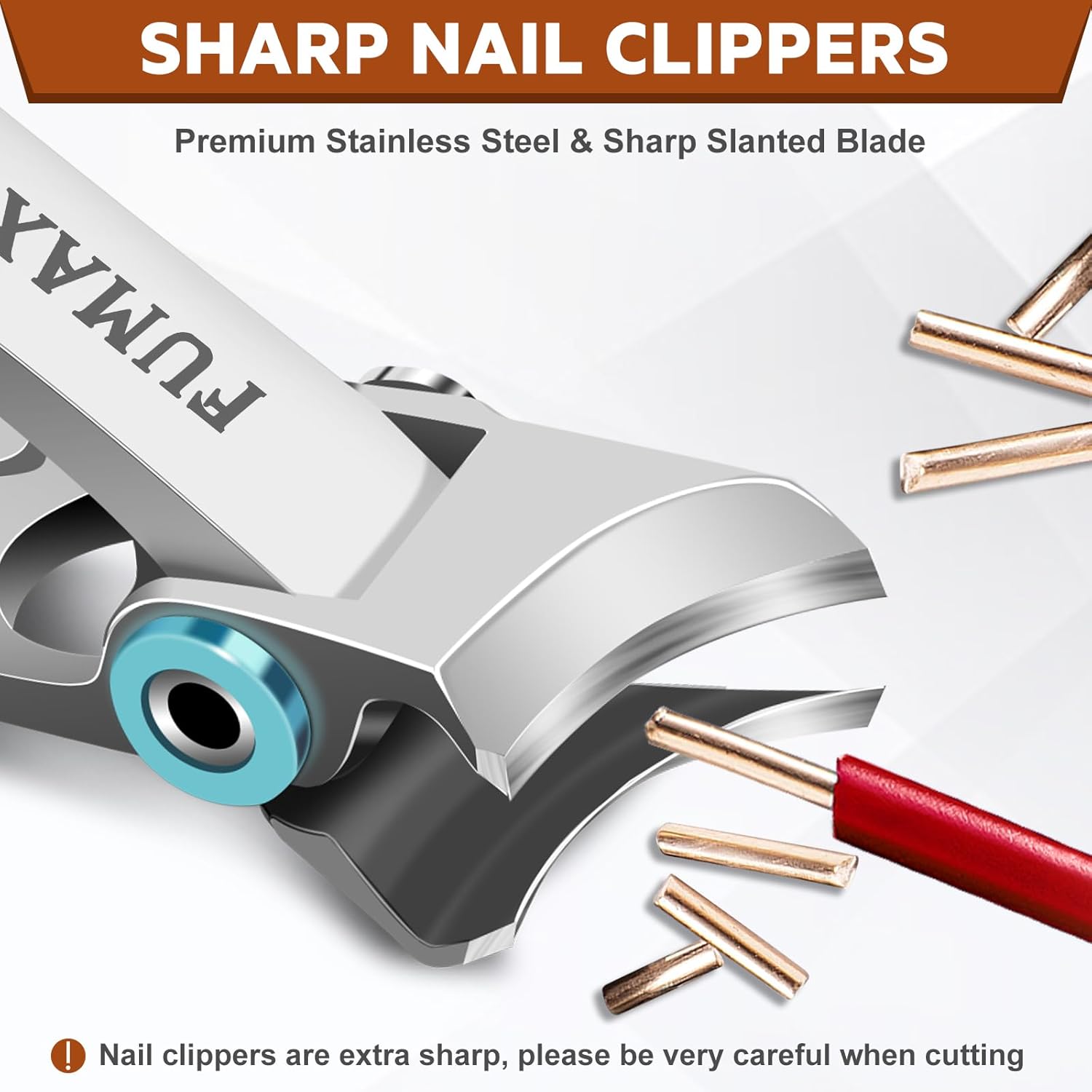 - SLANTED NAIL CLIPPERS - Nail clippers for men are designed with new upgraded slanted curved jaws, which is larger, wider cutting mouth and sharper. The curvature of toe nail clippers fit perfectly to the toenail for accurate trimming of ingrown toenails, painful sharp corners, cuticles and peeling skin. Toenail clippers for seniors ensure smooth and efficient trimming experience and prevents injuries while cutting nails.
