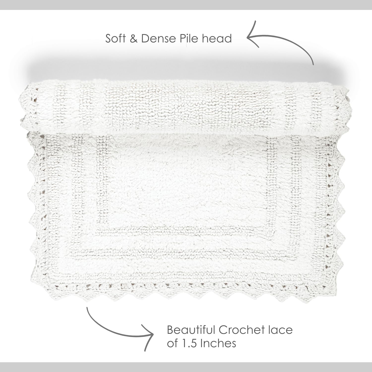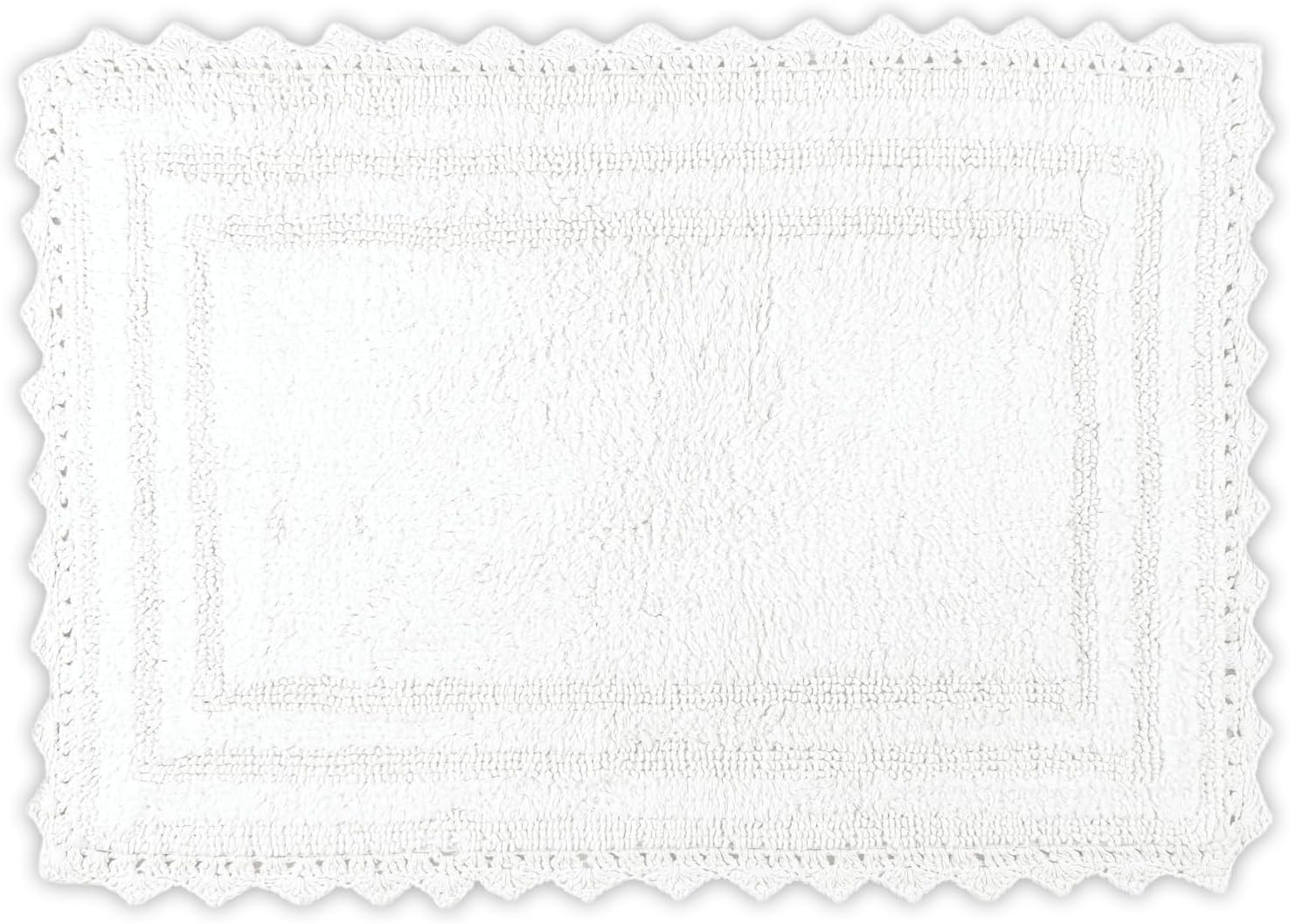 RAJRANG White Cotton Bath Rug 21x34 Inch – Reversible Soft Rectangular Mat with Crochet Border for Bathroom, Kitchen, Entry – Machine Washable & Absorbent