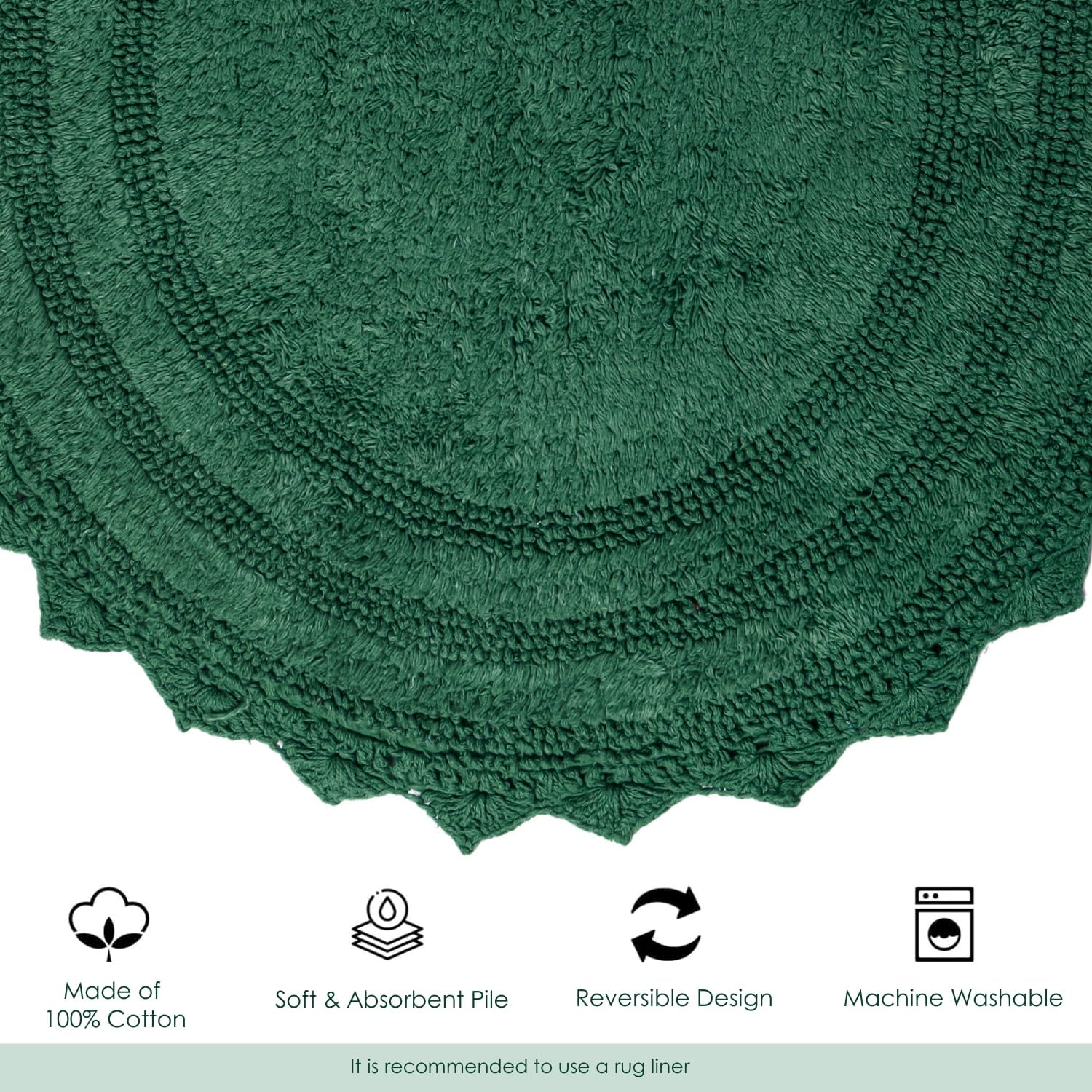 RAJRANG Foliage Green Oval Cotton Bath Mat – 34x21 Inch Reversible Crochet Bathroom Rug – Soft, Absorbent, Handmade Boho Rug for Spa, Kitchen, or Entryway