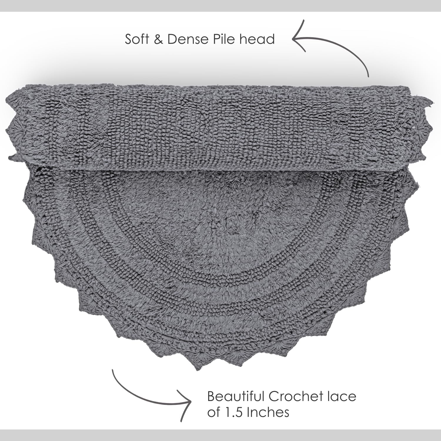 RAJRANG Grey Oval Crochet Bath Rug | 24x17 Inches Cotton Reversible Mat for Bathroom, Kitchen or Spa | Soft, Absorbent, Boho-Inspired Home Accent