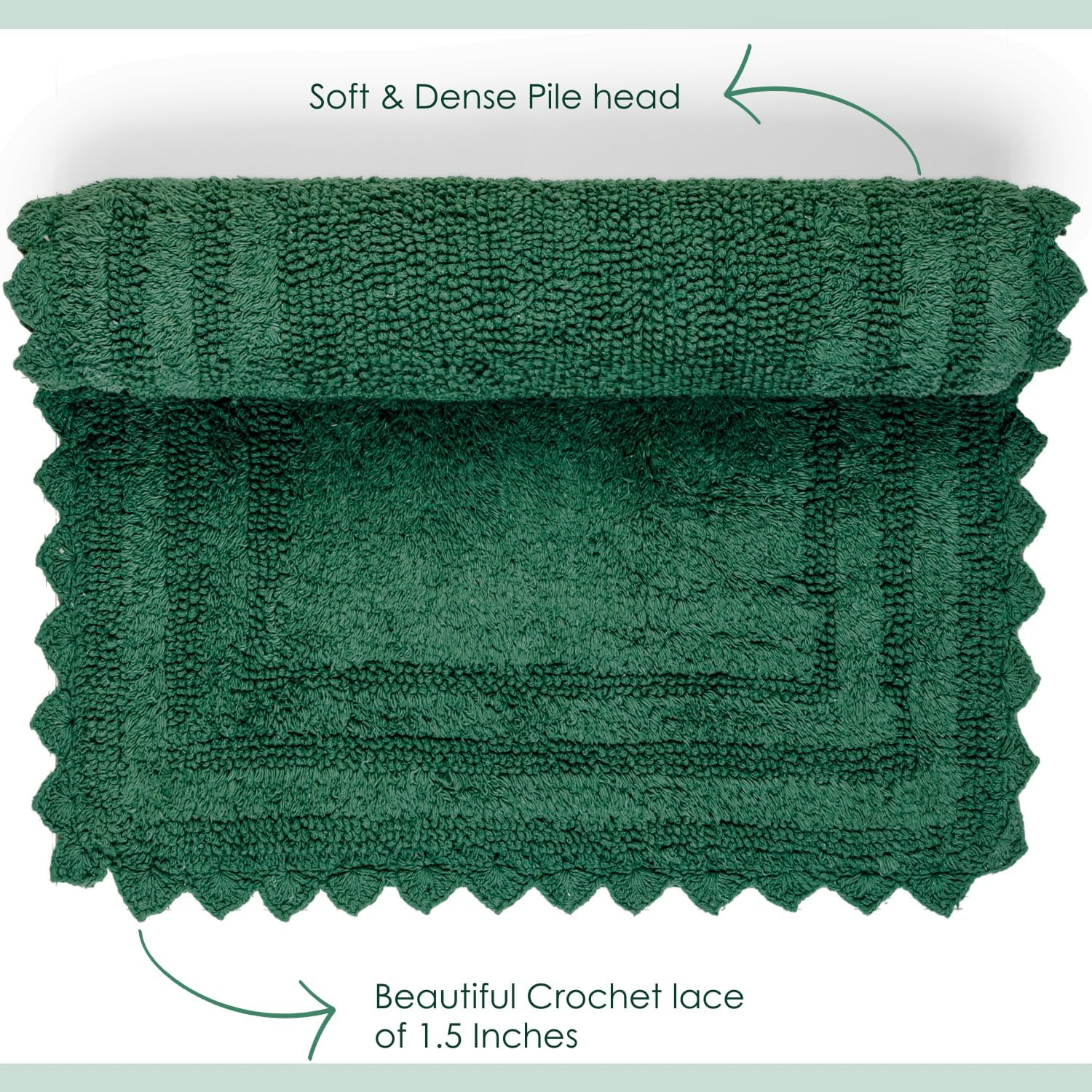 RAJRANG Foliage Green Square Cotton Bath Rug | 24 Inch Reversible Bathroom Mat with Crochet Trim | Soft, Absorbent Rug for Bathroom, Vanity, or Kitchen Use
