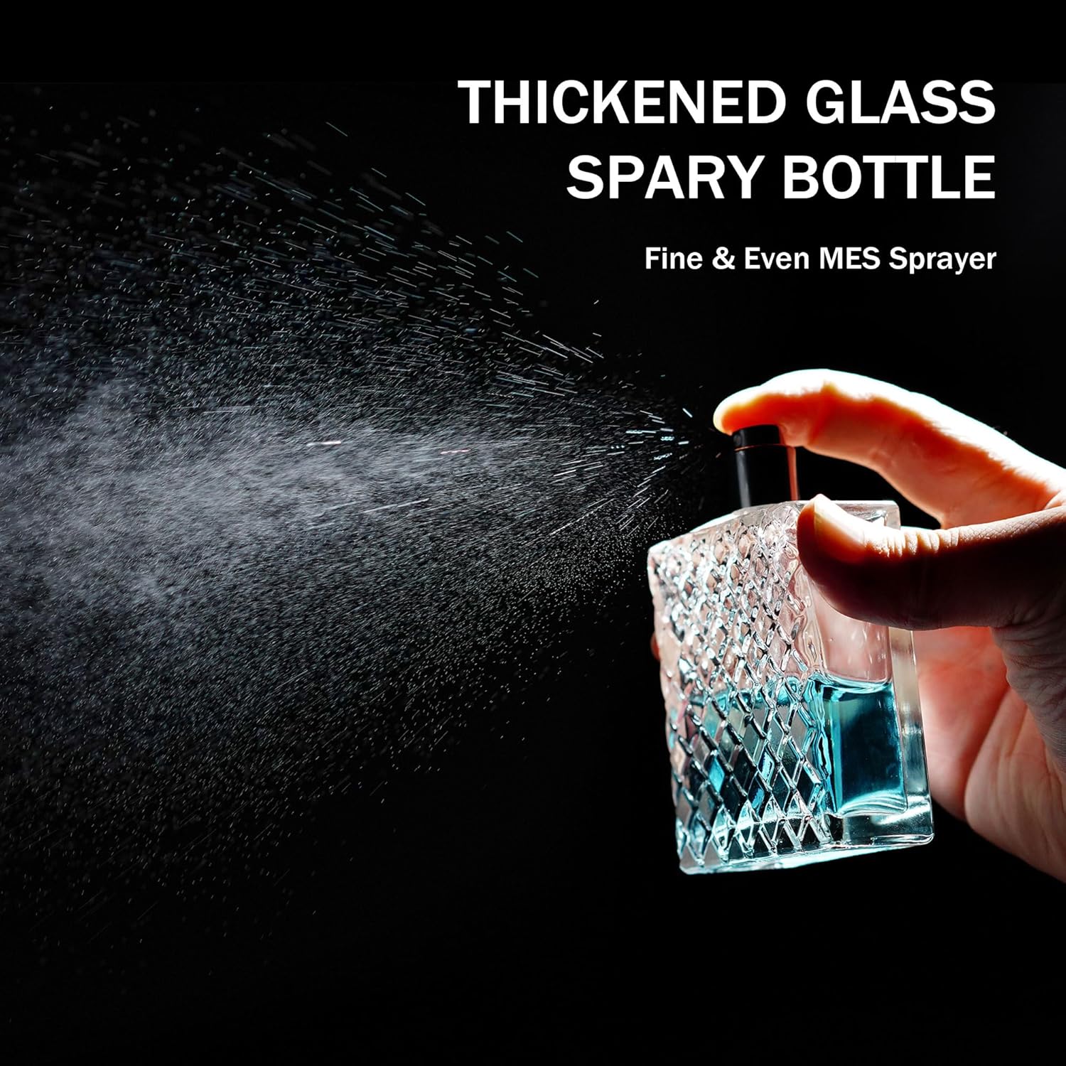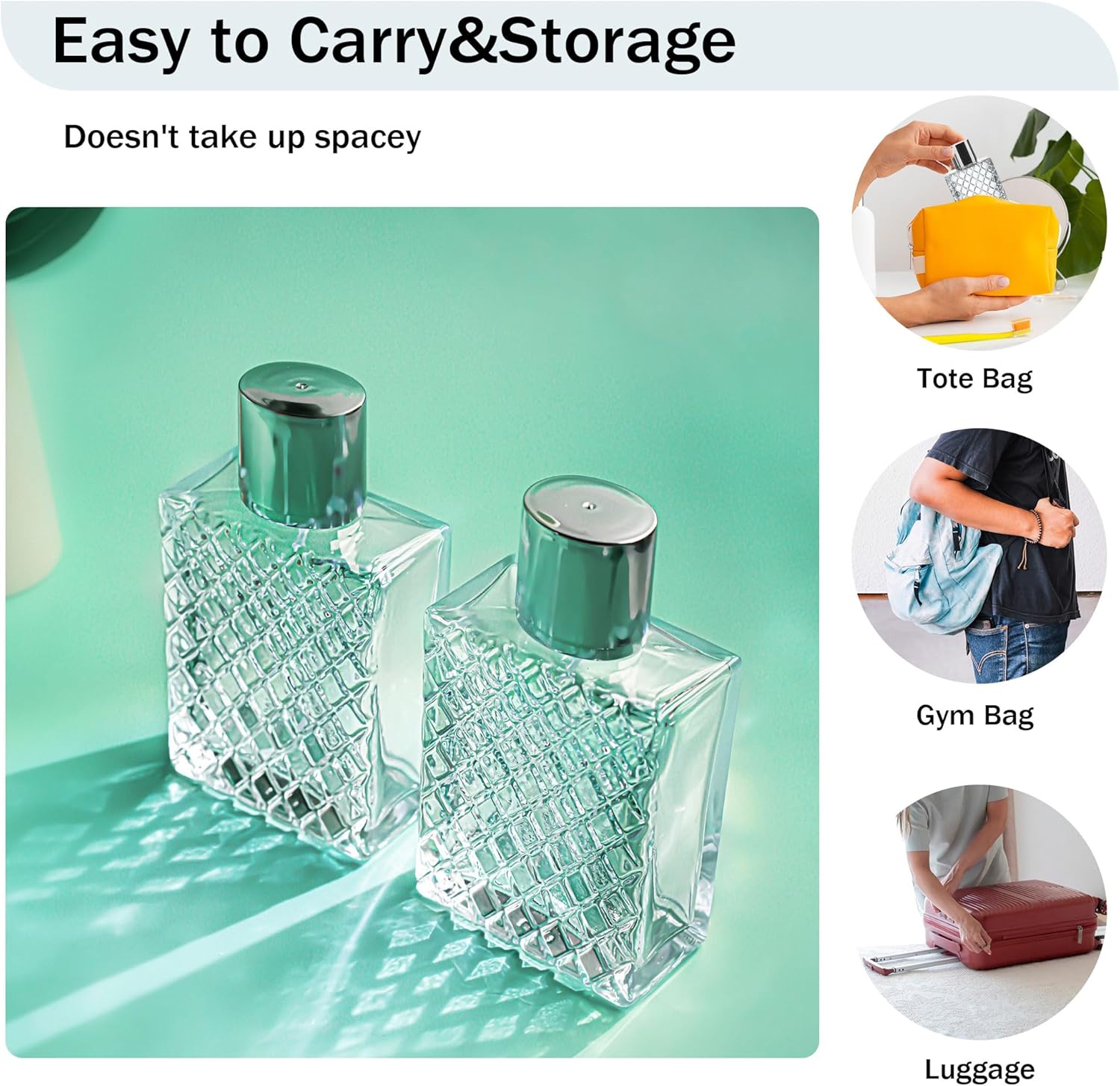 YU FENG 2 Pack Refillable Glass Spray Perfume Bottles 100ml / 3.4 oz Cosmetic Fine Mist Atomizer Bottle Empty Portable Clear Glass Essential Oil Container for Travel