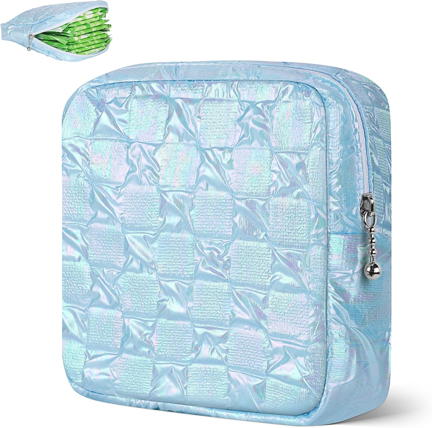 Desing Wish Sanitary Napkin Storage Bag Polyester Fabric Period Bag for Teen Girls Sanitary Pad Pouch for Sanitary Napkins/Tampons/Panty Liners Privacy Protector Pad Bag (Bubble-Check, Blue)