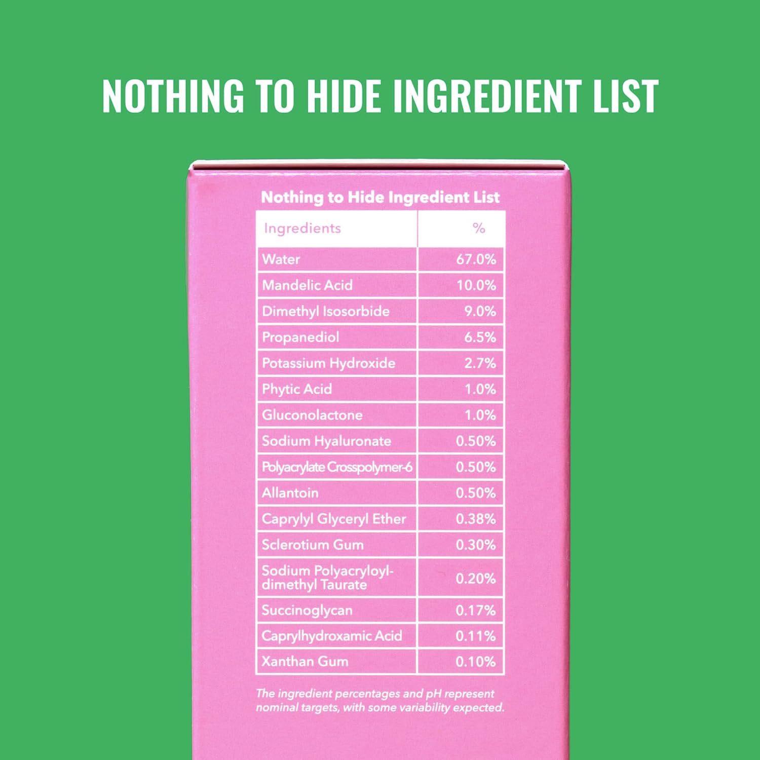 - POTENT FORMULA FOR RADIANT SKIN: In addition to the hydrating power of hyaluronic acid this formula contains three gentle peeling agents (10% Mandelic Acid, 1% Phytic Acid, and 1% Gluconolactone) to help exfoliate and promote cell turnover.