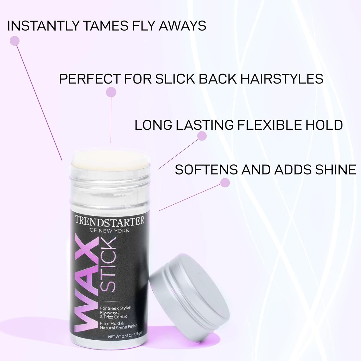 TRENDSTARTER - HAIR WAX STICK (75g) - Frizz Control - Flyaway Control - Firm Hold & Natural Shine Finish for Slick Sleek Sophisticated Styles - Avocado Extract Infused - All-Day Hair Control