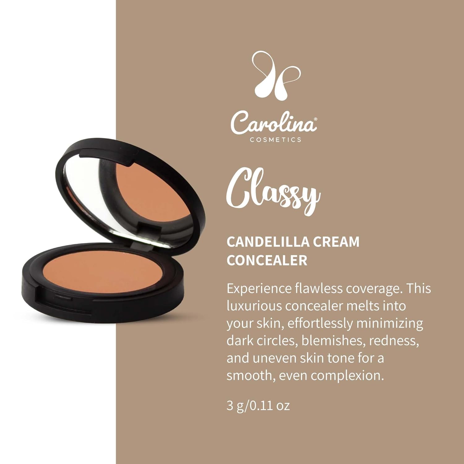 Candelilla Cream Concealer in Classy Color - Vegan, Non-GMO - Minimizes Dark Circles, Blemishes & Uneven Skin Tone - 0.11 oz