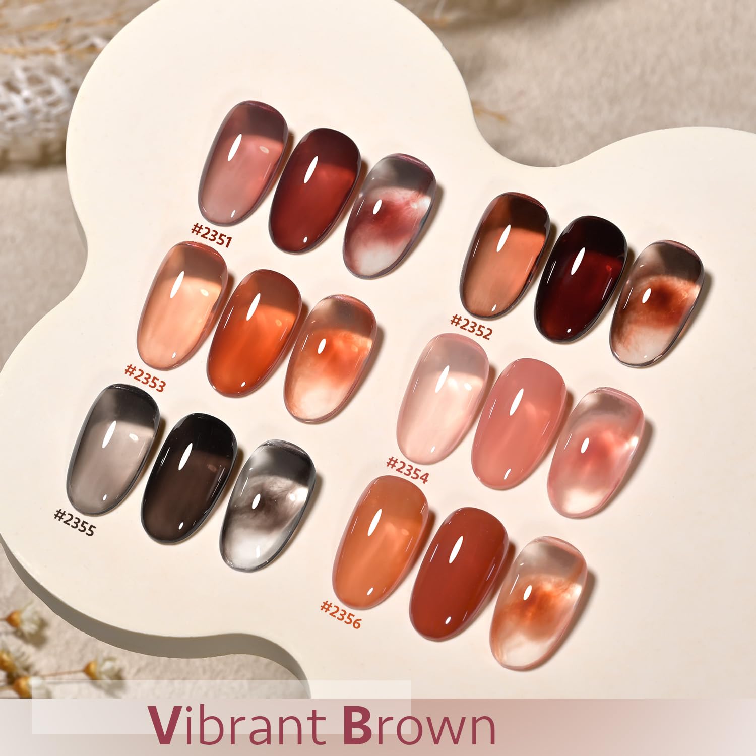 GAOY Jelly Gel Nail Polish of 6 Transparent Milker Nude Brown Red Pink Colors Sheer Gel Polish Kit for Salon Manicure and Nail Art DIY at Home