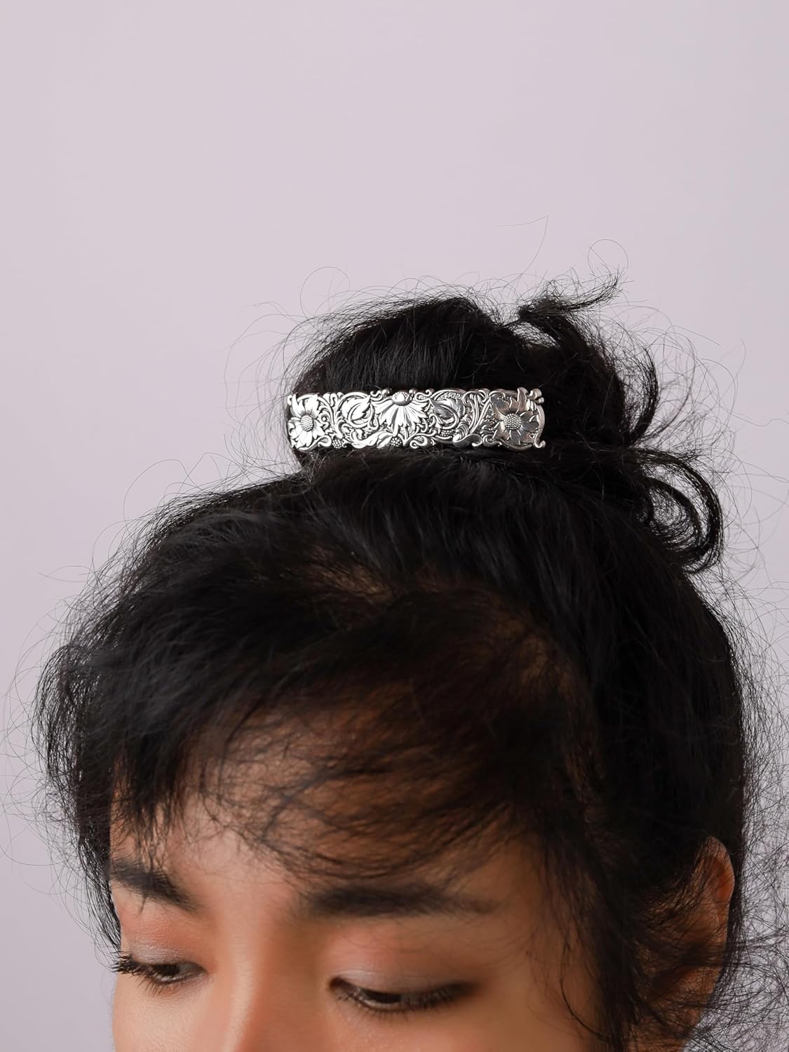 HAQUIL Vintage Flower Rectangular Hairclip, Hair Clip Vintage Viking Celtic Knot Protection Hair Clip, Barrettes Gift for Women Viking Hair Accessories