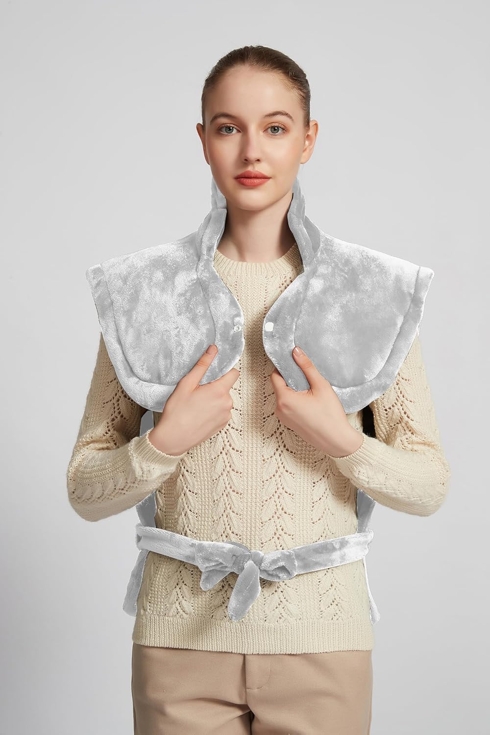 Ambershine 26"x35" XXXL King Size Neck& Shoulder& Back Heating Pad with 12 Temperature Settings& 4 Auto-Off Countdown Timers, Pain Relief for Back/Neck/Shoulder, Christmas gift for mom dad(Light Grey)