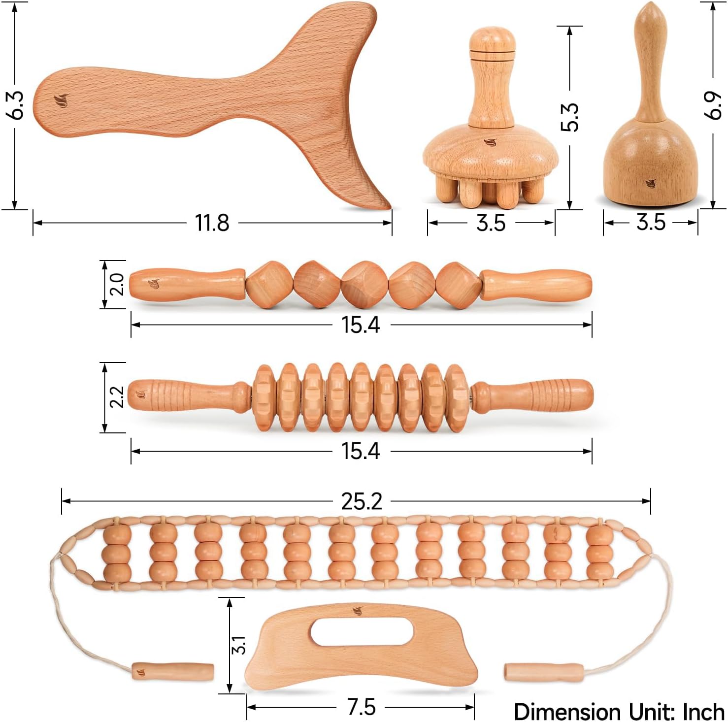- Self Massage with 7-in-1 Kit: This complete set includes 7 individually designed wooden tools, allowing you to enjoy full-body massage without any assistance. Each piece is handcrafted from premium wood for a smooth and comfortable experience.