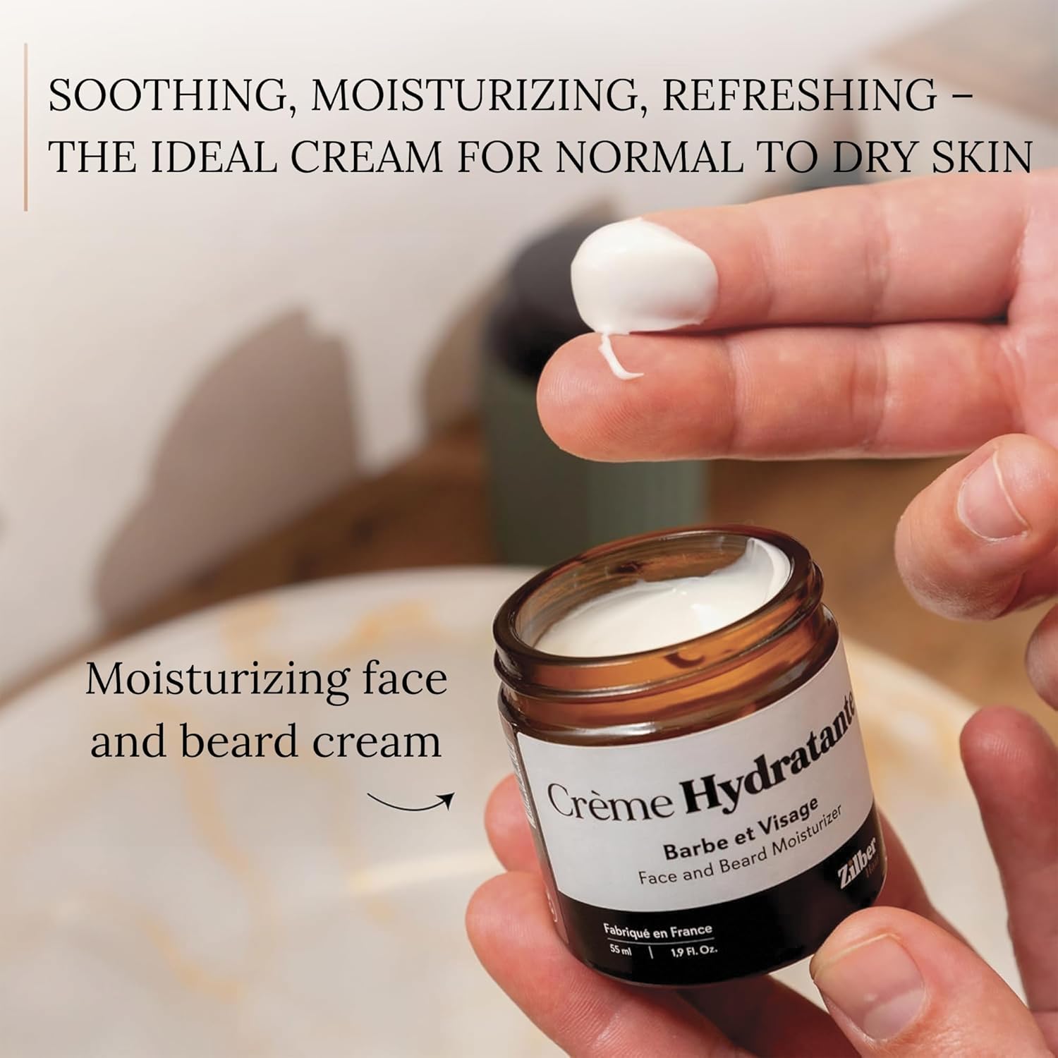 - FACE AND BEARD MOISTURIZING CREAM: The moisturizing cream for normal to dry skin is made from jojoba oil, carrot oil and rose hydrolat, to soothe, hydrate and refresh your skin and beard. Palm oil free and fragrance free, it does not contain petrochemical ingredients. Vegan, not tested on animals and made in France.