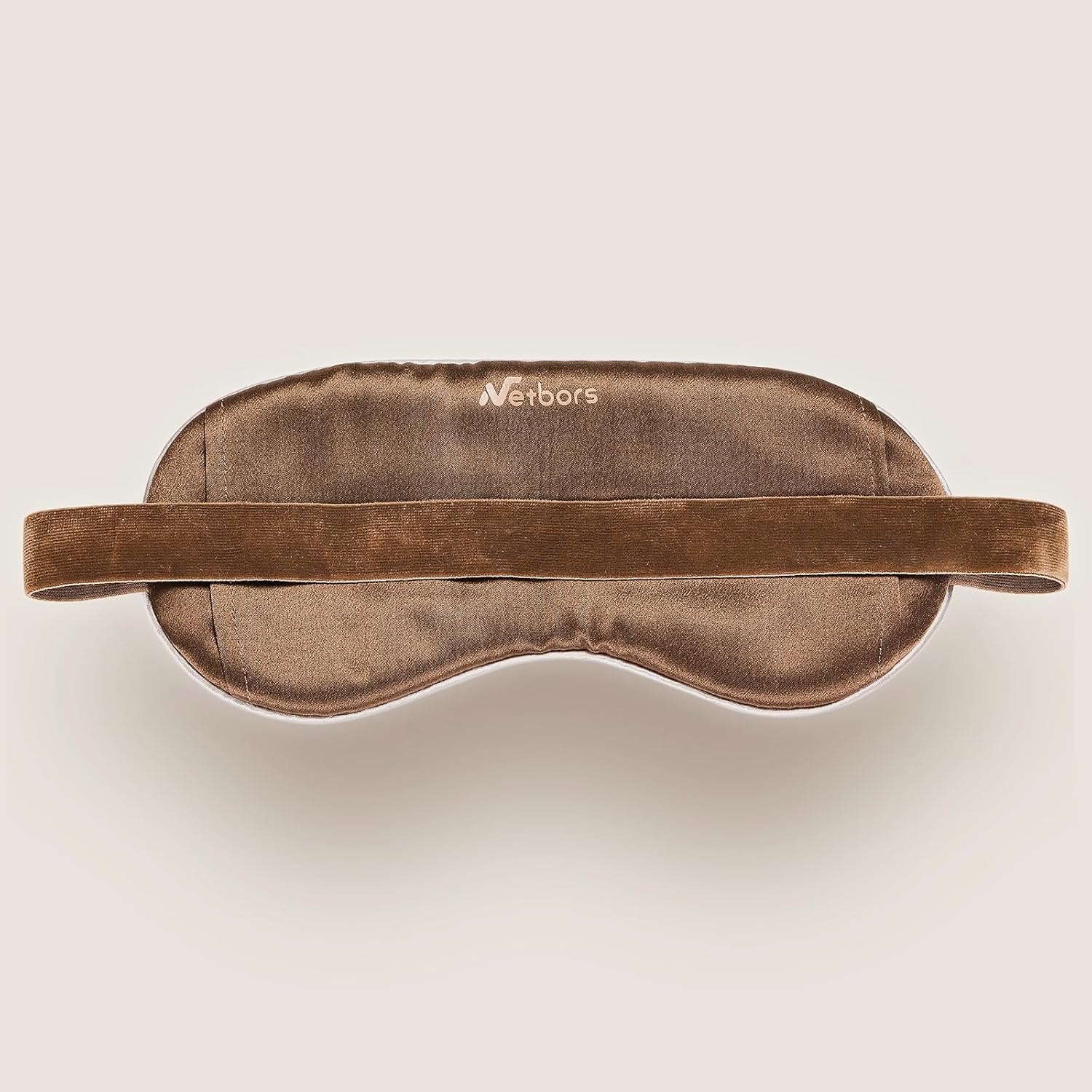 Luxury Silk Sleep Mask with 22mm Mulberry Silk, Velvet Elastic Band, Heat Therapy Pocket, and Travel Pouch, Brown Color