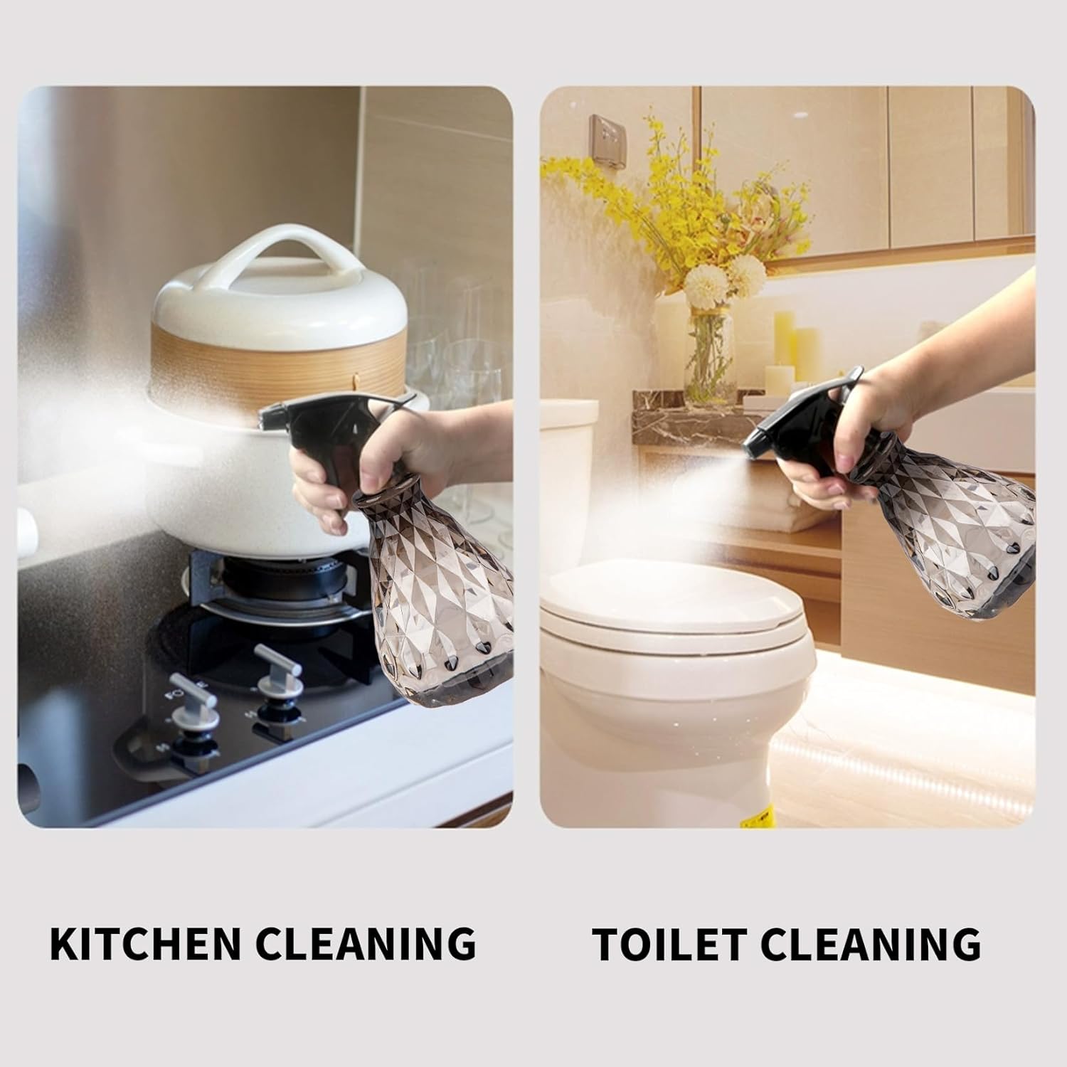 - Ergonomic Design: Designed with the ergonomic push head, the spray head is easy to press and room for your fingers. The plastic spray bottle fits firmly in your hand, easy for everyday use.