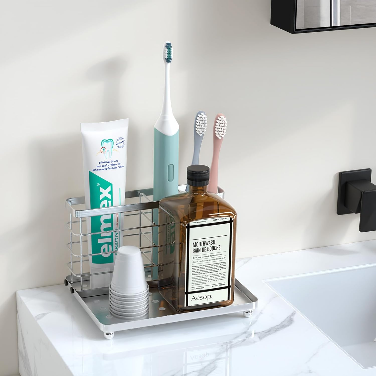 - Note: This package only includes a toothbrush holder with a detachable tray. Other items shown in the image are not included. Please confirm the size before purchasing to ensure the holder meets your needs.