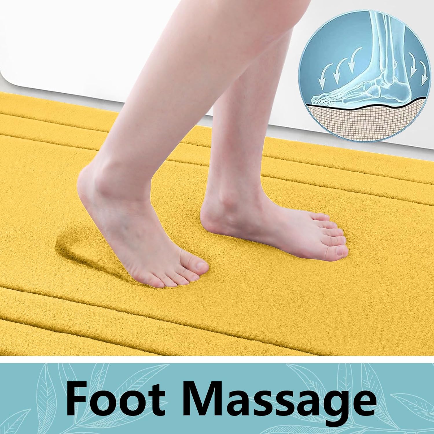Arotive Memory Foam Bathroom Rug Mat 30x20, Ultra Soft and Absorbent Bath Mat, Machine Wash Dry, Comfortable Bath Rug Carpet for Bathroom Floor, Tub and Shower, Yellow