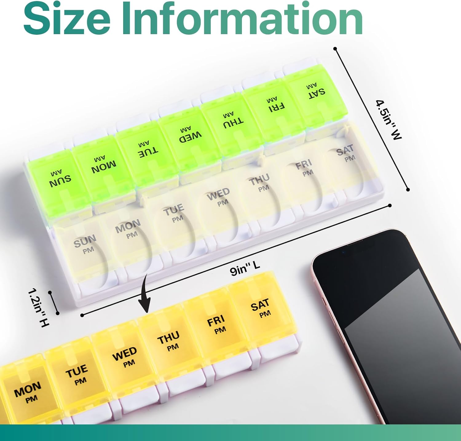 - Health Friendly: Made from food-grade quality material, ensuring safe and hygienic use. The transparent case and AM/PM marks make it easy to distinguish and organize medicines effectively.
