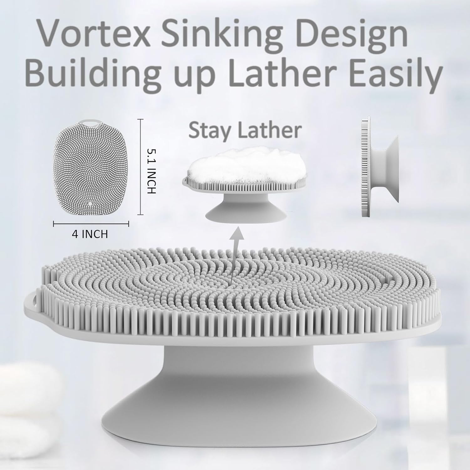 Soft Silicone Body Scrubber, Gentle Like a Hand Exfoliating Your Skin and Build Up Lather Easily, Back Large Suction Cup Easy to Store, Long-Lasting & Deep Clean (Gray)