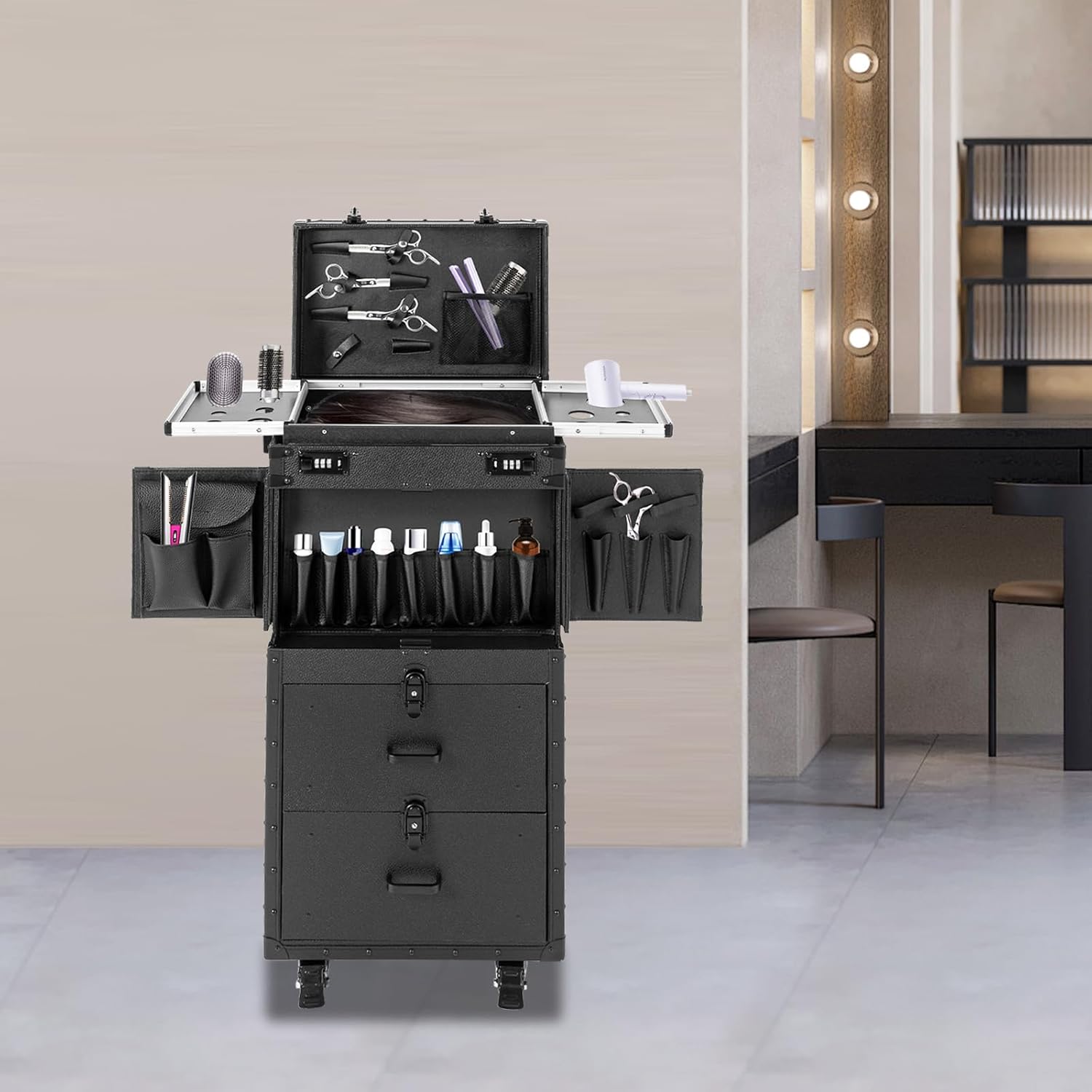 - CONVENIENT STORAGE:Multi-layer large capacity inside the makeup train case, each layer is built for storing different tools. You can use cosmetology case on wheels to store your cosmetics, hair dryer, barber tools, etc. to keep your tools more organized.