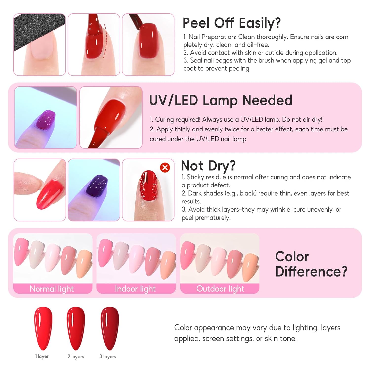 - ăEasy Application and Highly Pigmentedă Our gel polish are made with natural resins, minerals and safe ingredients, features flawless application, which is smooth and easy to spread, especially for beginners. The gel prevents yellowing or dulling, it's natural, sturdy and flexible. Please note: due to different monitor settings and electronic devices, colors may differ