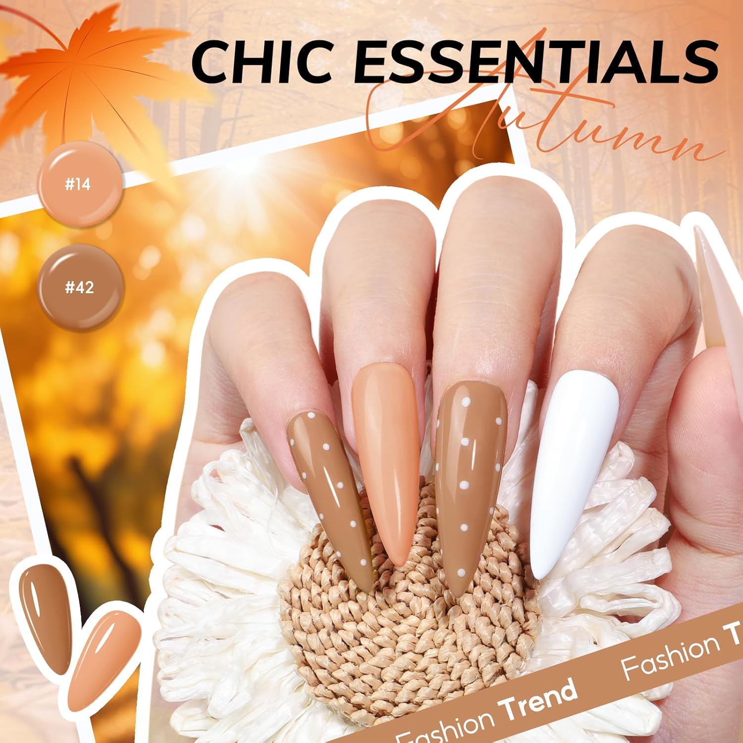 COSCELIA 40pcs Fall Gel Nail Polish Set, 35 Colors Gel polish with 5 Bottles Base and Glossy Matte Glitter Top Coat White Brown Black Nude Red Orange Colors Halloween Nail Polish Nail Art Gifts