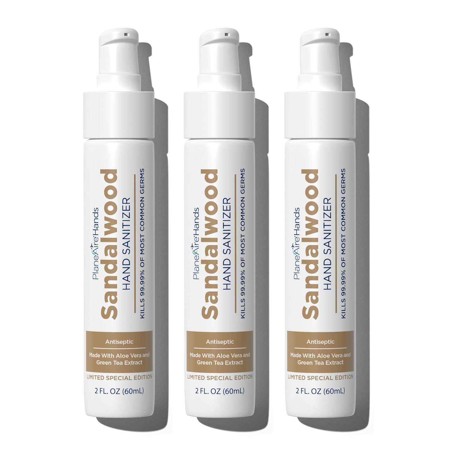 Sandalwood Lotion Hand Sanitizer | Travel Essential | TSA-Approved | Moisturizing Hand Lotion | Made with Aloe Vera & Essential Oils | Rich in Vitamin E | Cleanse & Moisturize | Travel Size | 3-Pack