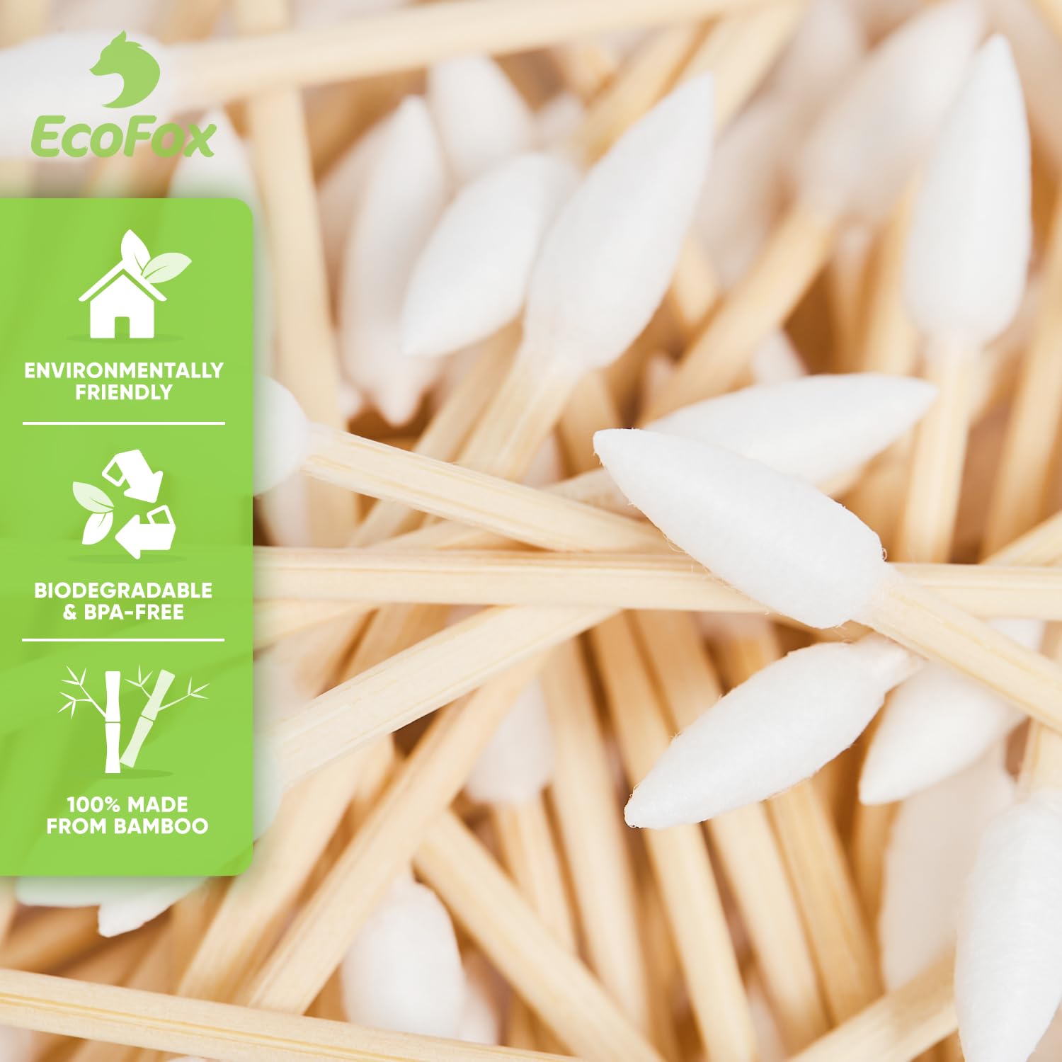 - 🌿 BIODEGRADABLE & ECO-FRIENDLY: EcoFox's Bamboo Cotton Swabs are made from 100% Bamboo & Pure Cotton! Bamboo is a uniquely fast growing plant type, capable of growing up to 3 feet per day - making it an ideal alternative to wood and paper as it is easily farmed.