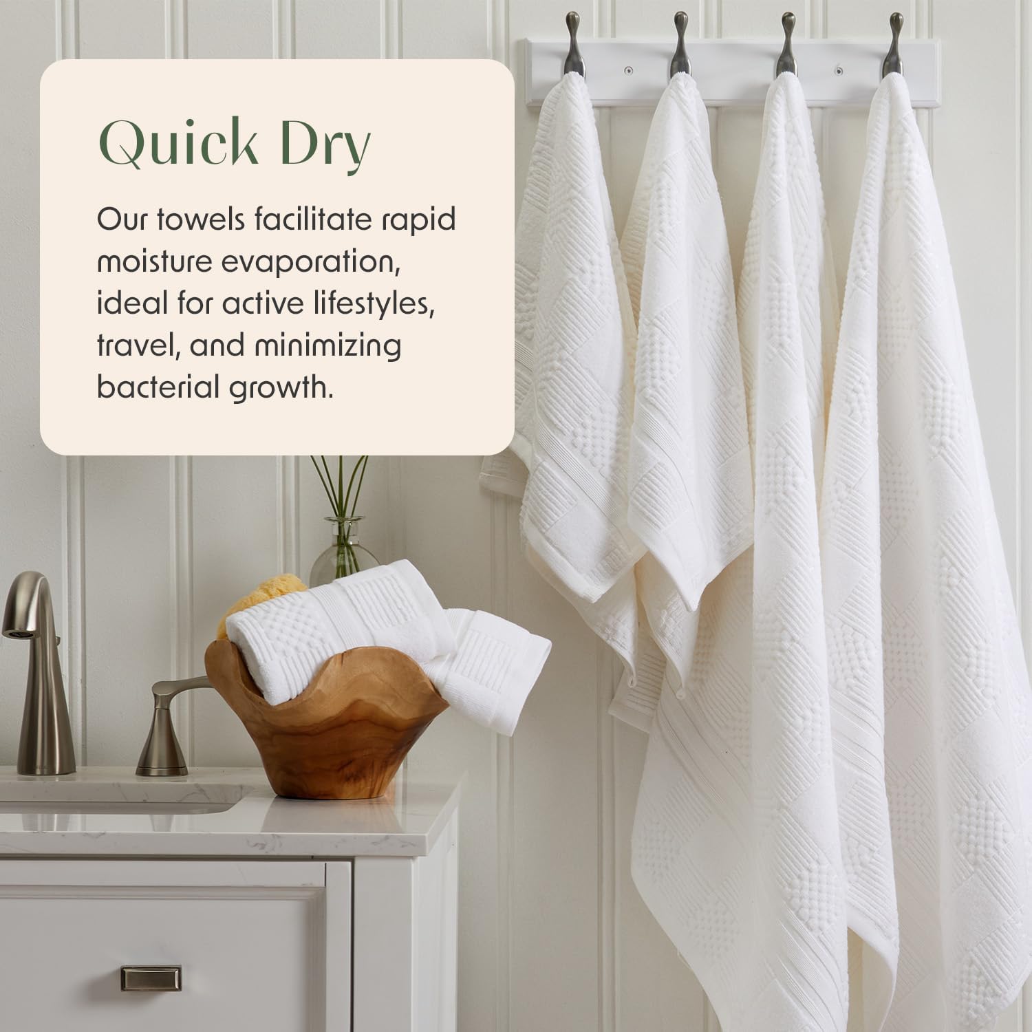 Springtree Home 100% Cotton Bathroom Towel Set | 6 Piece Set - White Towels | Geometric Textured Design | Absorbent & Quick-Dry | Oeko-TEX® Standard 100 Cotton | Myla Collection - White