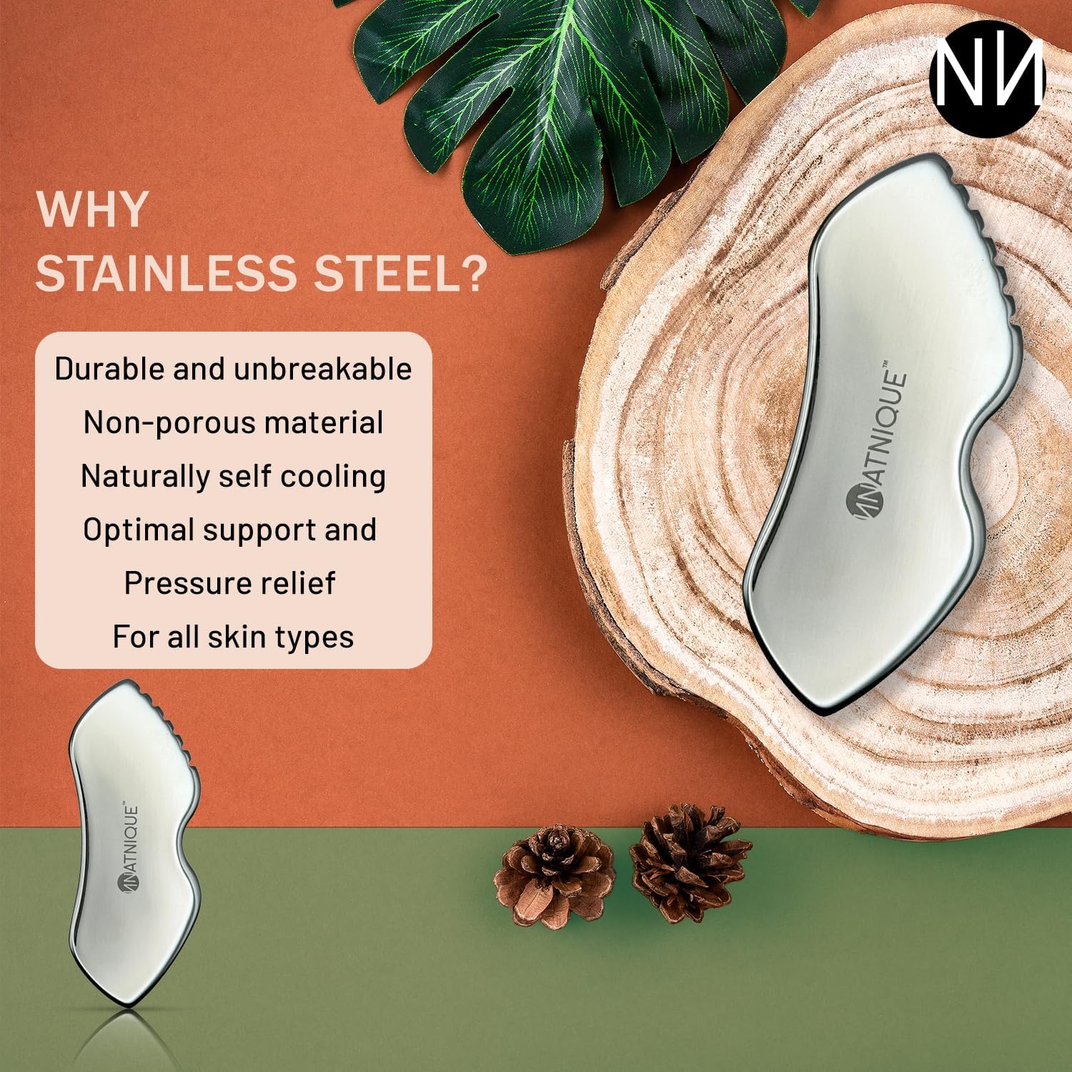 - Durable Stainless Steel Gua Sha – Crafted from 100% professional-grade stainless steel, this gua sha tool is durable, hygienic, rust-resistant, and unbreakable—lasting longer than jade or quartz tools while staying safe and easy to clean.