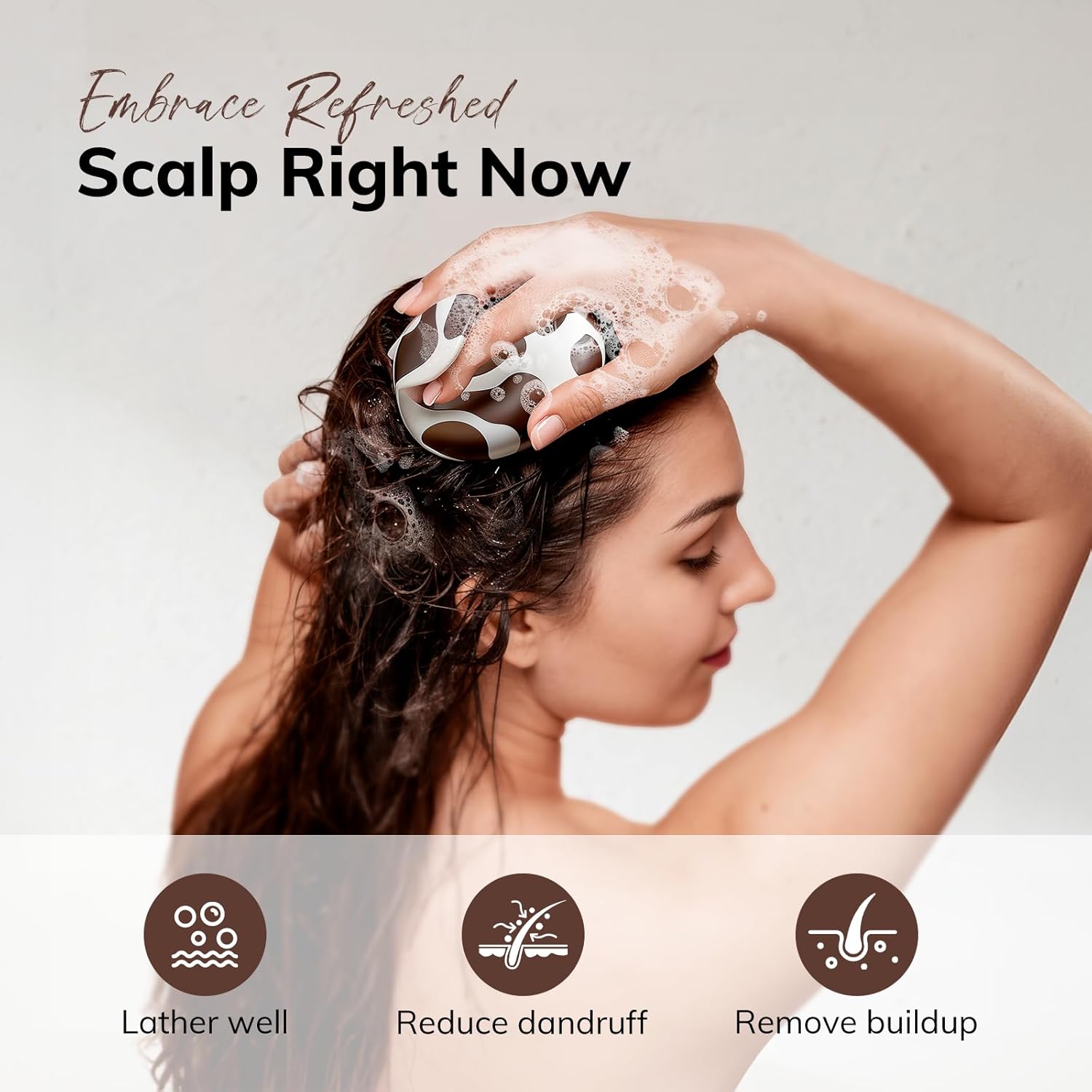 - Experience Upgrade: Our scalp scrubber is made with scalp-friendly silicone bristles that strike the perfect balance between soft and sturdy for sensitive scalps and all scalp types. The ergonomic shape and leaf handle provide a comfortable grip, even for those with thick or curly hair. Its compact size is also great for traveling