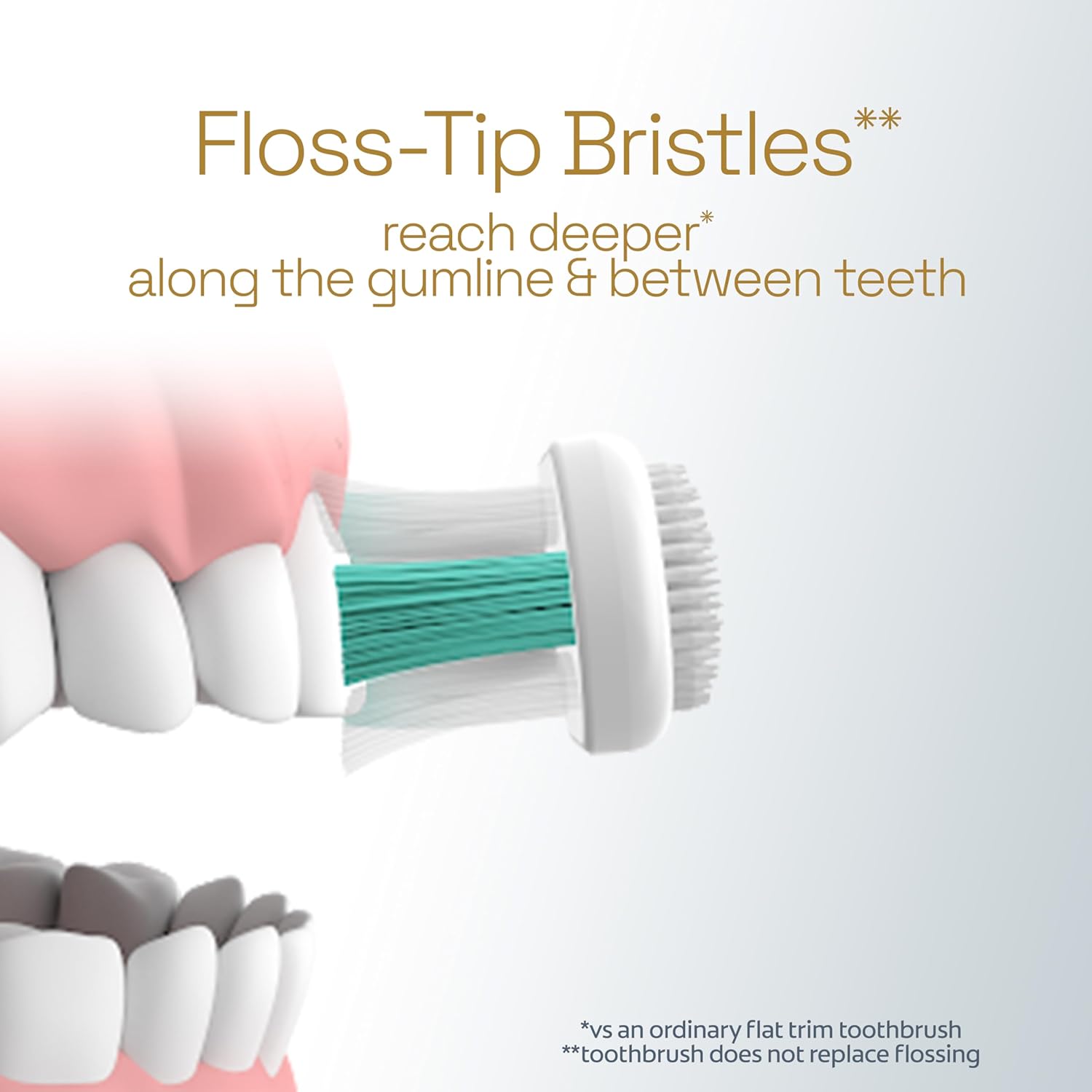 - This manual toothbrush pack features soft tapered Floss-Tip (1) bristles that reach deeper (2) along the gumline and between teeth to remove bacteria
