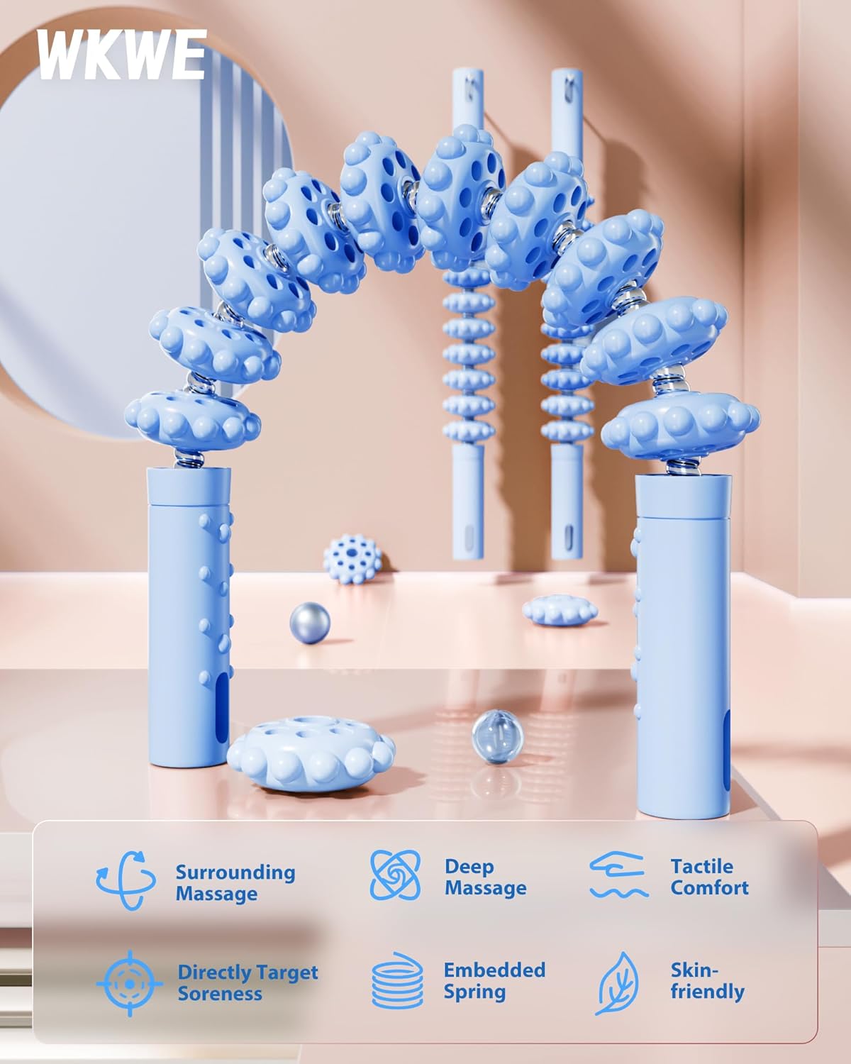 - NOT AN ORDINARY STICK: The rod of this roller is made of high-elasticity and thickened spring that bends to your needs! Great for neck, shoulders, arms, legs, upper back, lower back, buttocks, thighs, hamstrings, quads, calves, shins, feet, shin splints and more