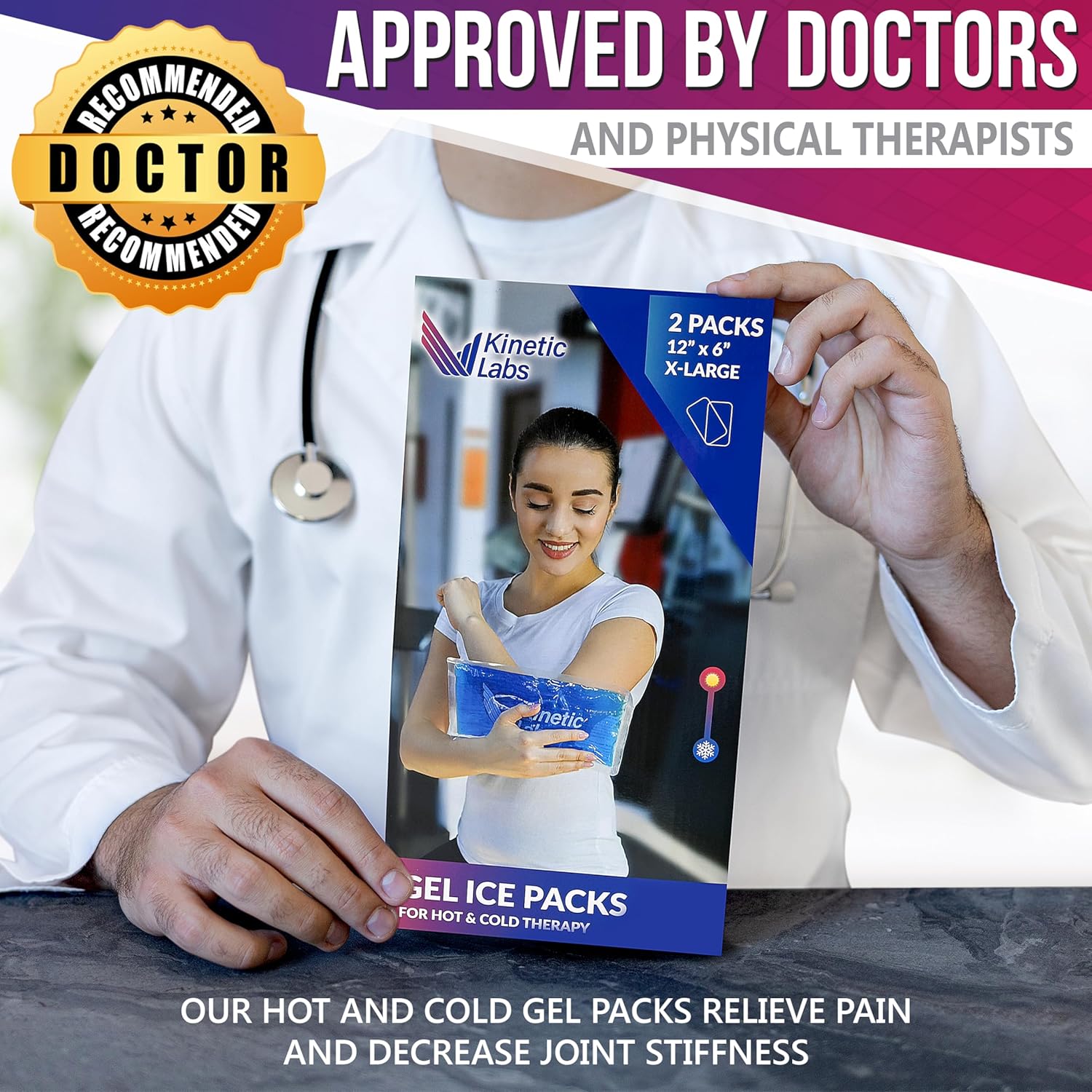 Reusable Gel Ice Packs for Injuries by Kinetic Labs (2 Pack) - Hot Cold Packs for Injuries 12" x 6" - Flexible Ice Packs for Back Head Knee Shoulder Neck Ankle Elbow Feet Headaches Surgery (X-Large)