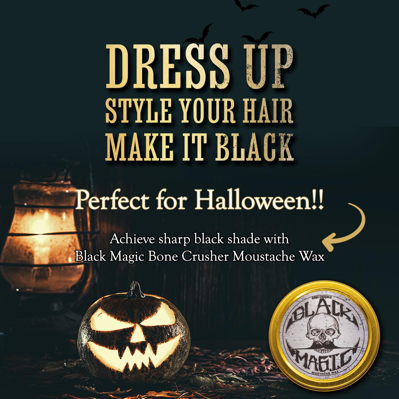Black Mustache Wax | Black Magic Death Grip Moustache Wax | Hide Grey Hair In Beard Or Moustache | Extra Strong Hold Mustache Wax Unscented | 1 oz Tin Heat Source Required (Black Magic Bone Crusher)