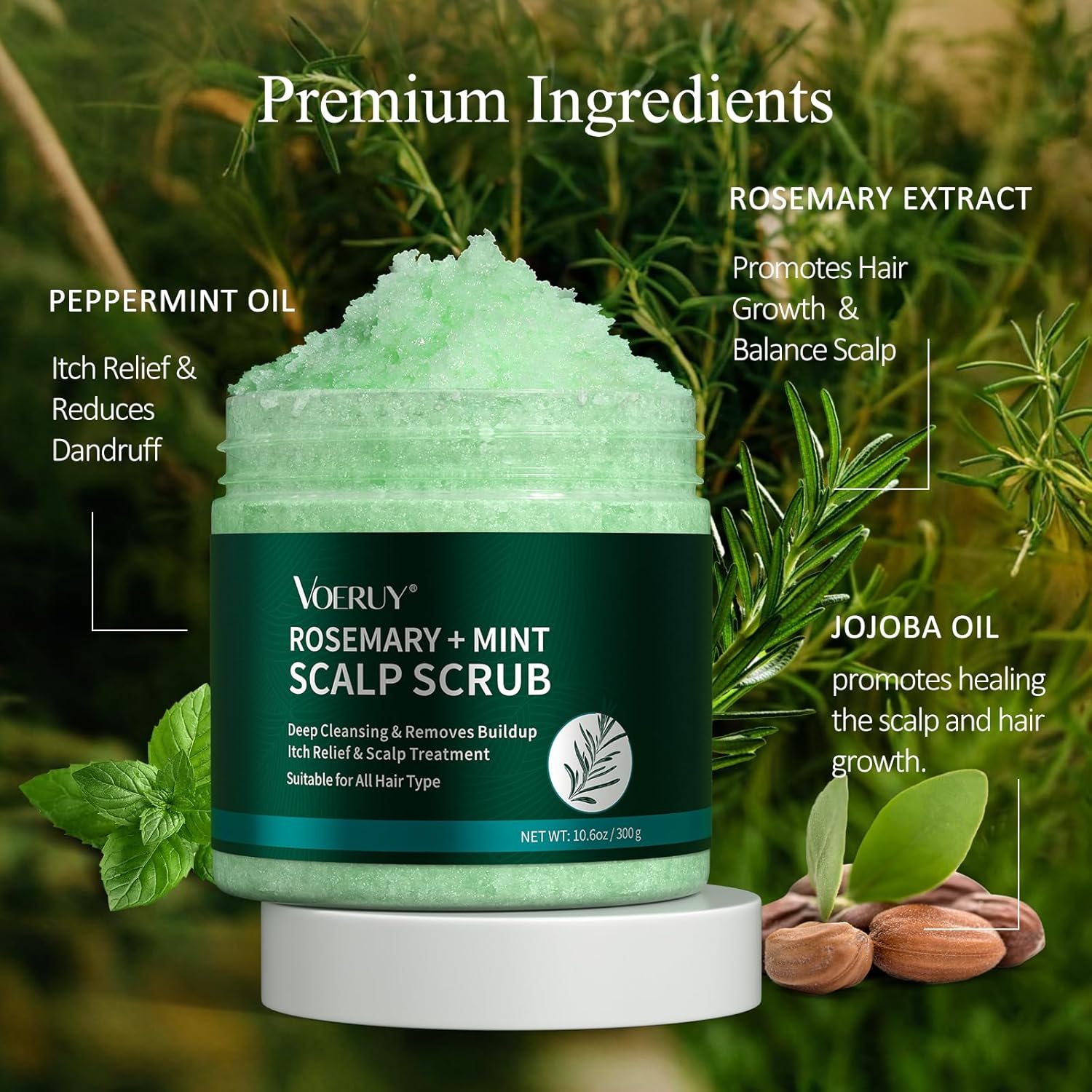 - 【PROMOTE HAIR GROWTH & STRENGTHEN HAIR ROOTS】Made with premium ingredients that will improve scalp health, Our hair scrub with rosemary essential oil, and promotes hair growth and strengthen hair roots. Peppermint oil can soothes itchy scalp and moisturize the scalp