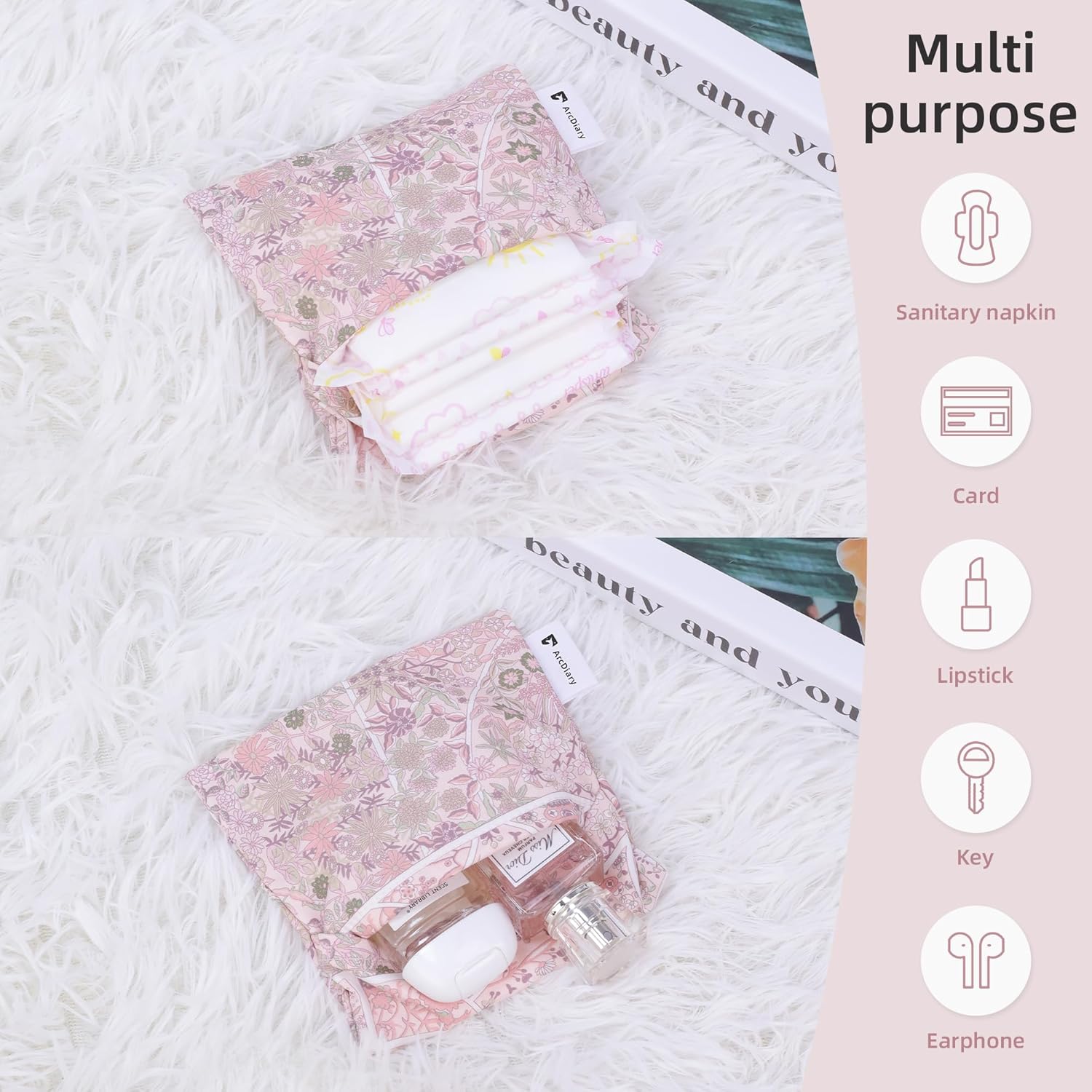 - 【Multifunctional】This menstrual pad pouch is perfect for storing sanitary napkins, tampons. It is also a multi-functional wallet for storing your personal belongings or some miscellaneous items: jewelry, cosmetics, credit cards, and so on. These menstrual pad pouches are suitable for daily use in office, school, dating, traveling, hotel, indoor or outdoor and more.