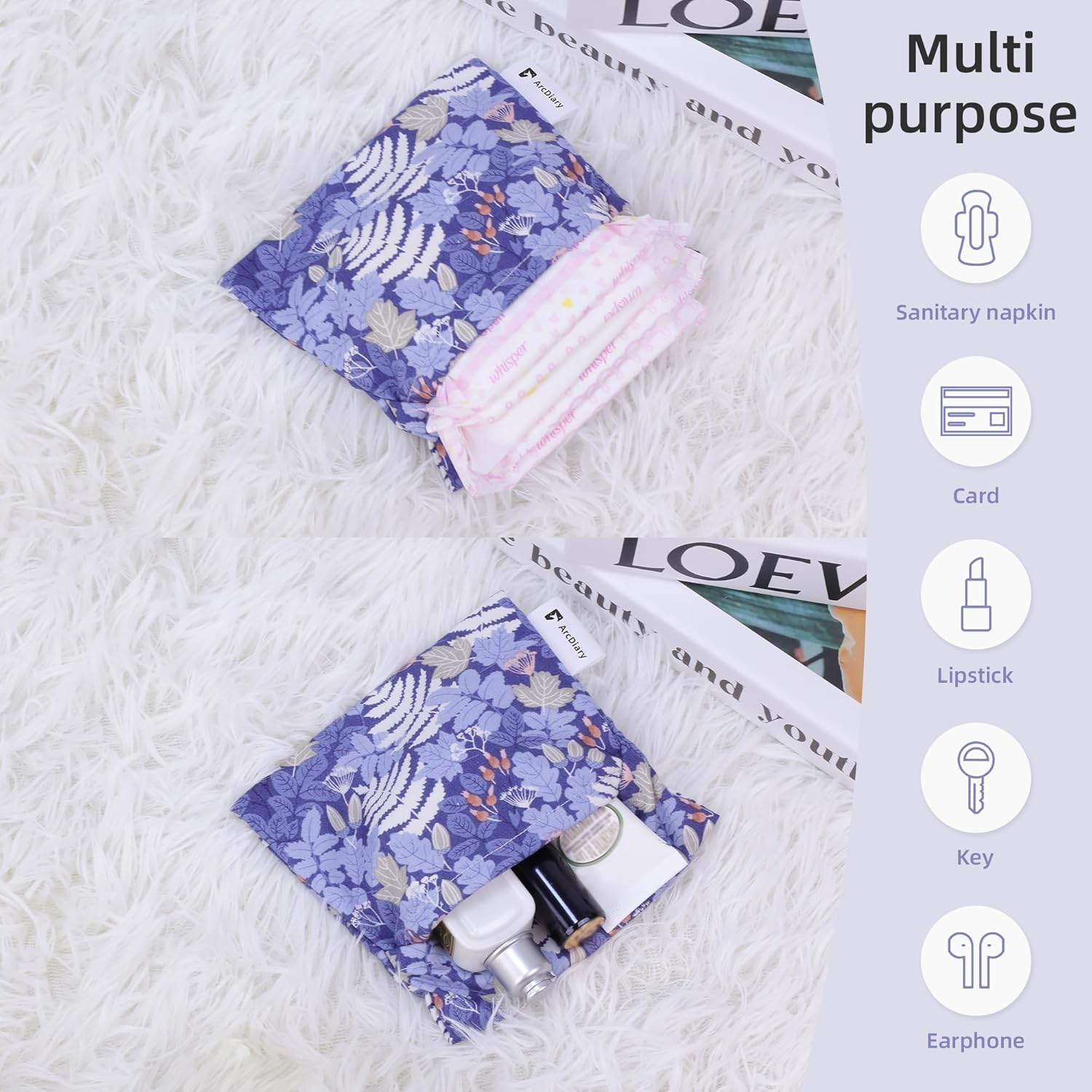 - 【Multifunctional】This menstrual pad pouch is perfect for storing sanitary napkins, tampons. It is also a multi-functional wallet for storing your personal belongings or some miscellaneous items: jewelry, cosmetics, credit cards, and so on. These menstrual pad pouches are suitable for daily use in office, school, dating, traveling, hotel, indoor or outdoor and more.