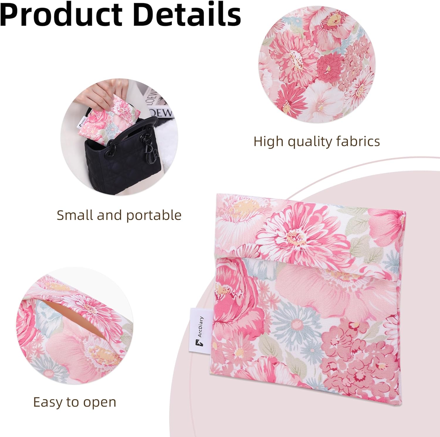 - 【Multifunctional】This menstrual pad pouch is perfect for storing sanitary napkins, tampons. It is also a multi-functional wallet for storing your personal belongings or some miscellaneous items: jewelry, cosmetics, credit cards, and so on. These menstrual pad pouches are suitable for daily use in office, school, dating, traveling, hotel, indoor or outdoor and more.