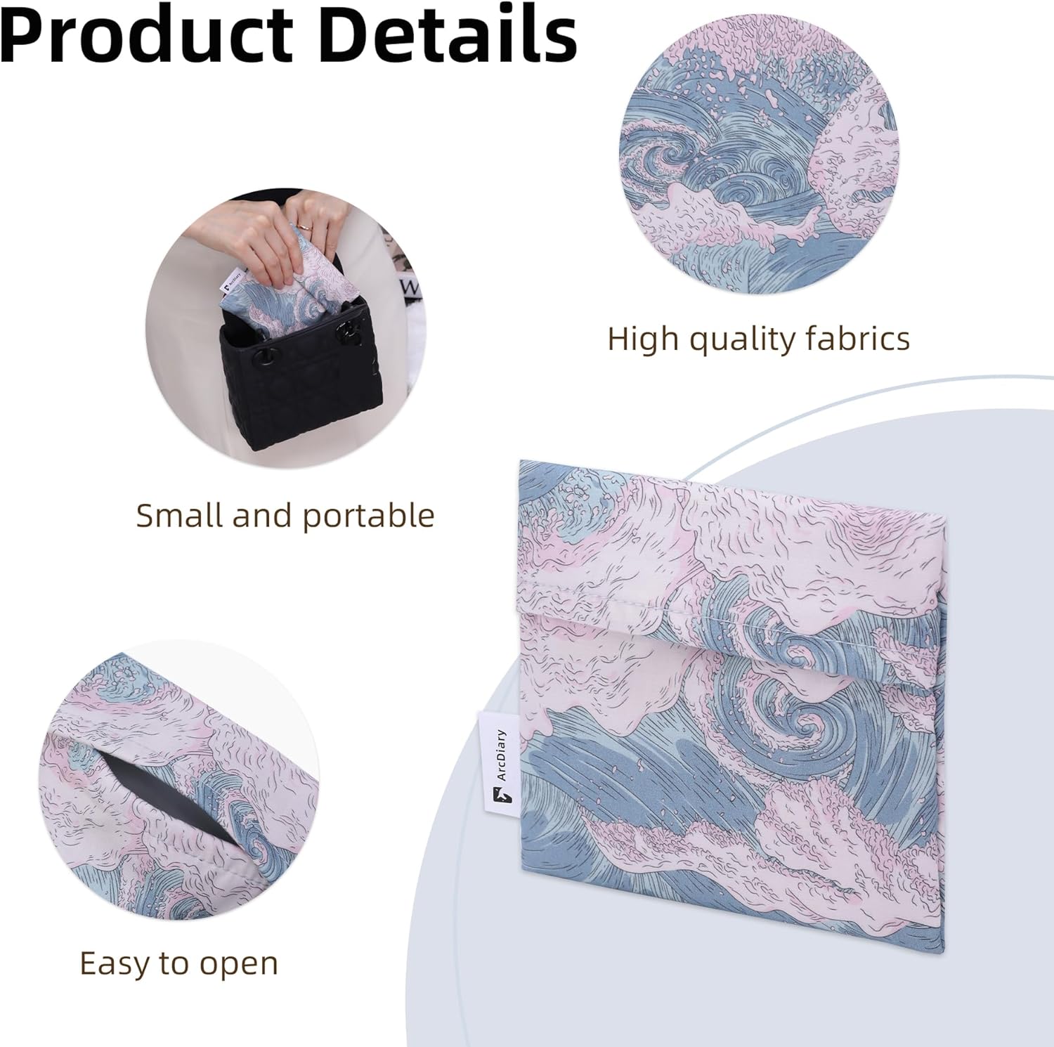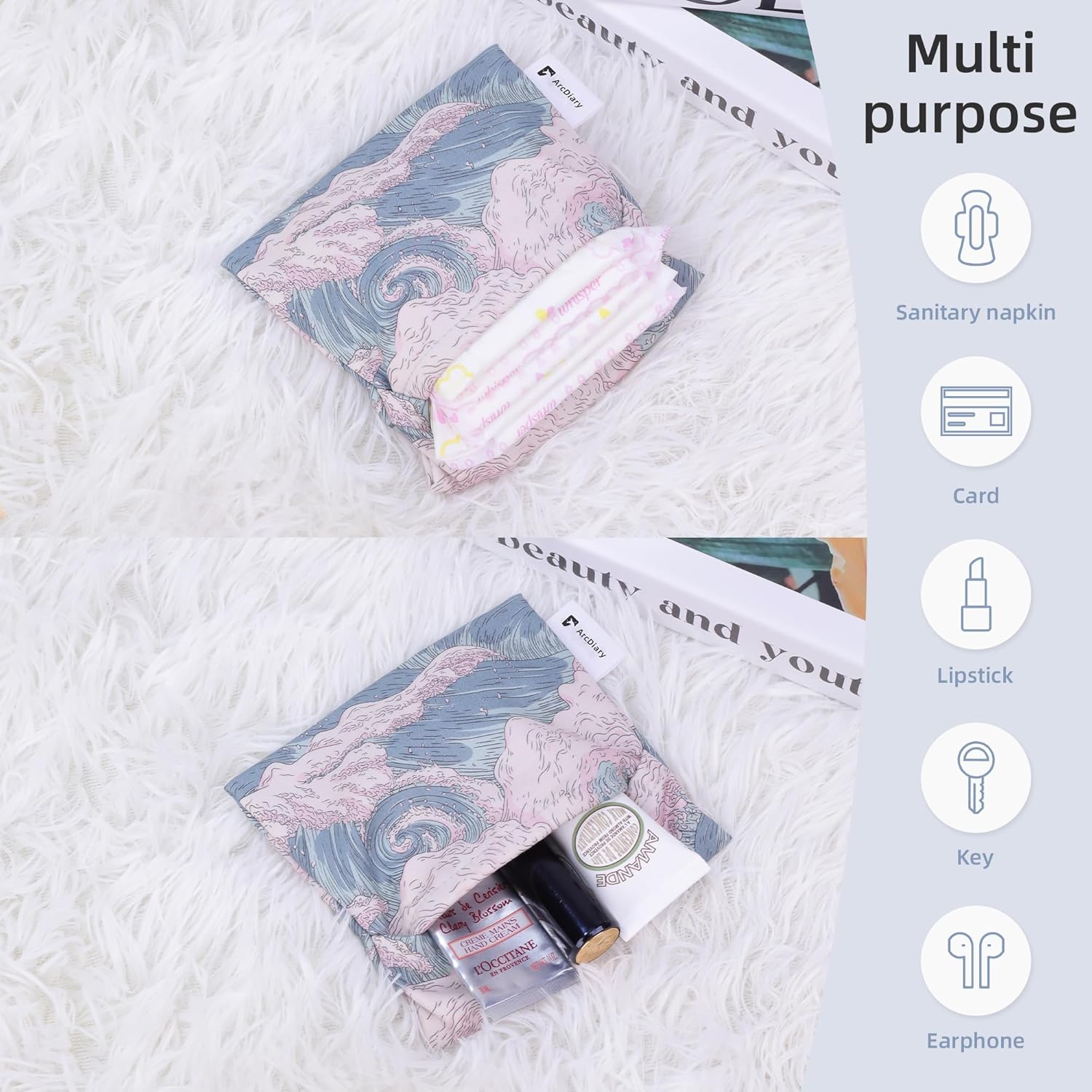 - 【Multifunctional】This menstrual pad pouch is perfect for storing sanitary napkins, tampons. It is also a multi-functional wallet for storing your personal belongings or some miscellaneous items: jewelry, cosmetics, credit cards, and so on. These menstrual pad pouches are suitable for daily use in office, school, dating, traveling, hotel, indoor or outdoor and more.