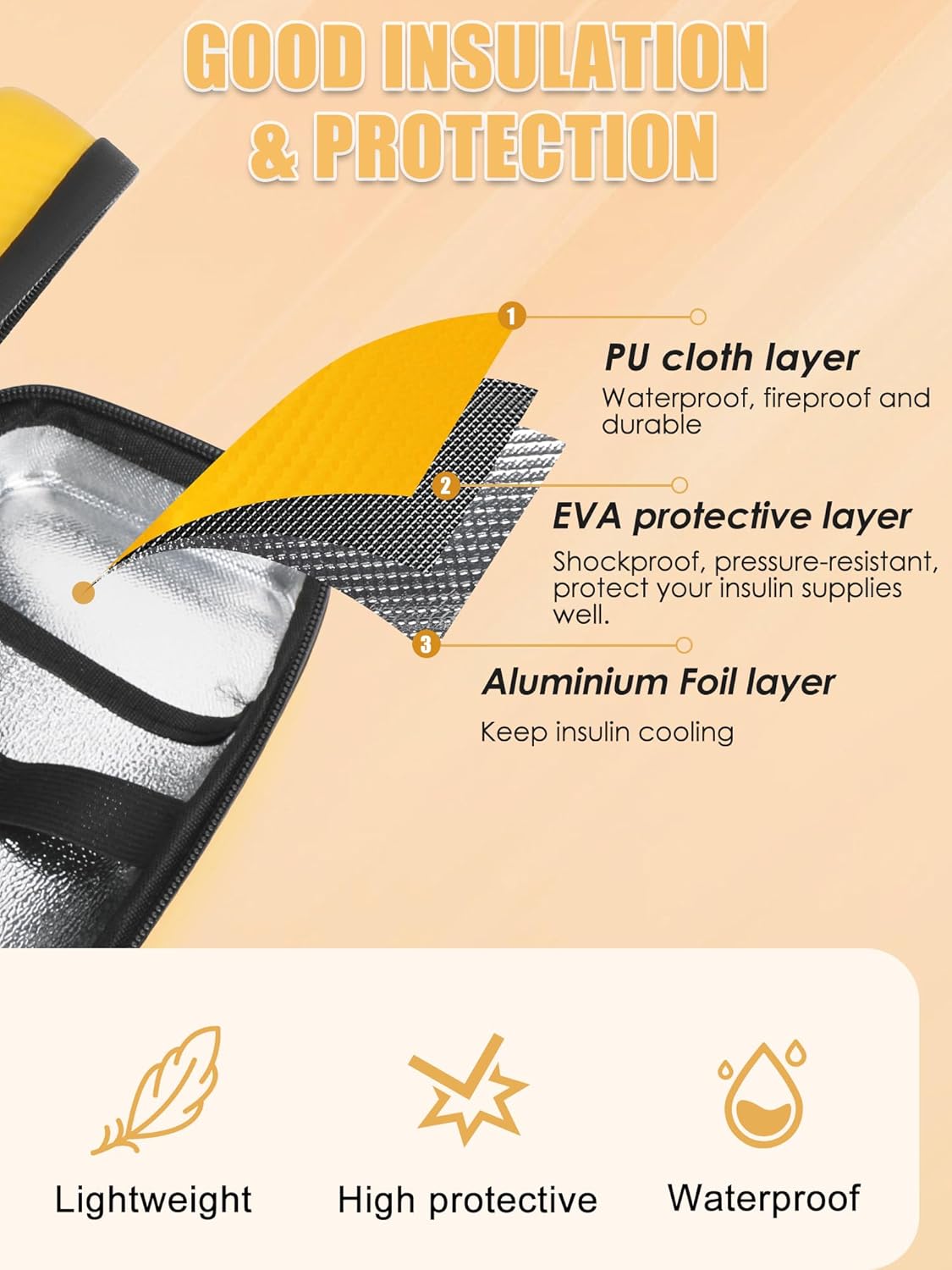 Insulin Cooler Travel Case with 2 TSA Approved Gel Ice Pack for Insulin Syringe and Diabetic Supplies, Temperature Display Diabetic Travel Case by LengKe (Yellow)