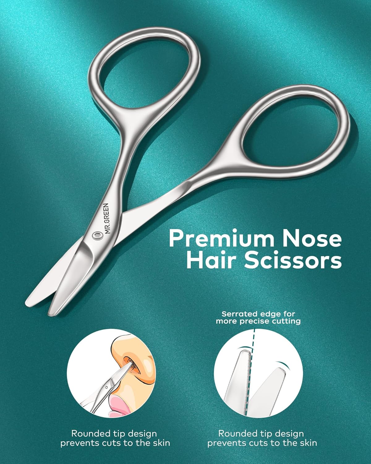- Comprehensive Care Tools: The set includes precision-designed tweezers that easily grasp fine hairs. The nose hair scissors with serrated round heads ensure safe trimming and prevent cuts. The serrated blade provides strong cutting force. The new round-headed ear scoop allows for safer and more effective ear cleaning, enhancing your overall care experience.