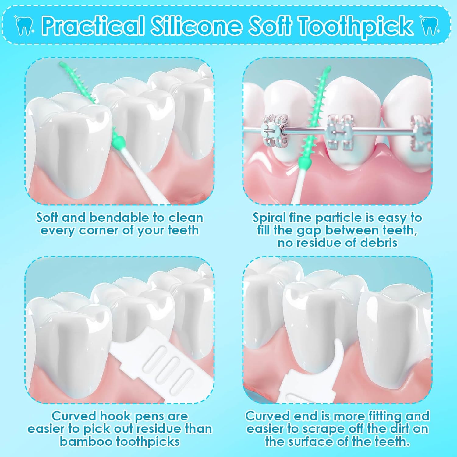 - Soft & Bendable: Braces brushes for teeth are soft and can be bent 360° to reach all areas of your mouth effortlessly, the dental brush can reach every nook and cranny of your teeth, effectively removing oral residues and ensuring a complete clean