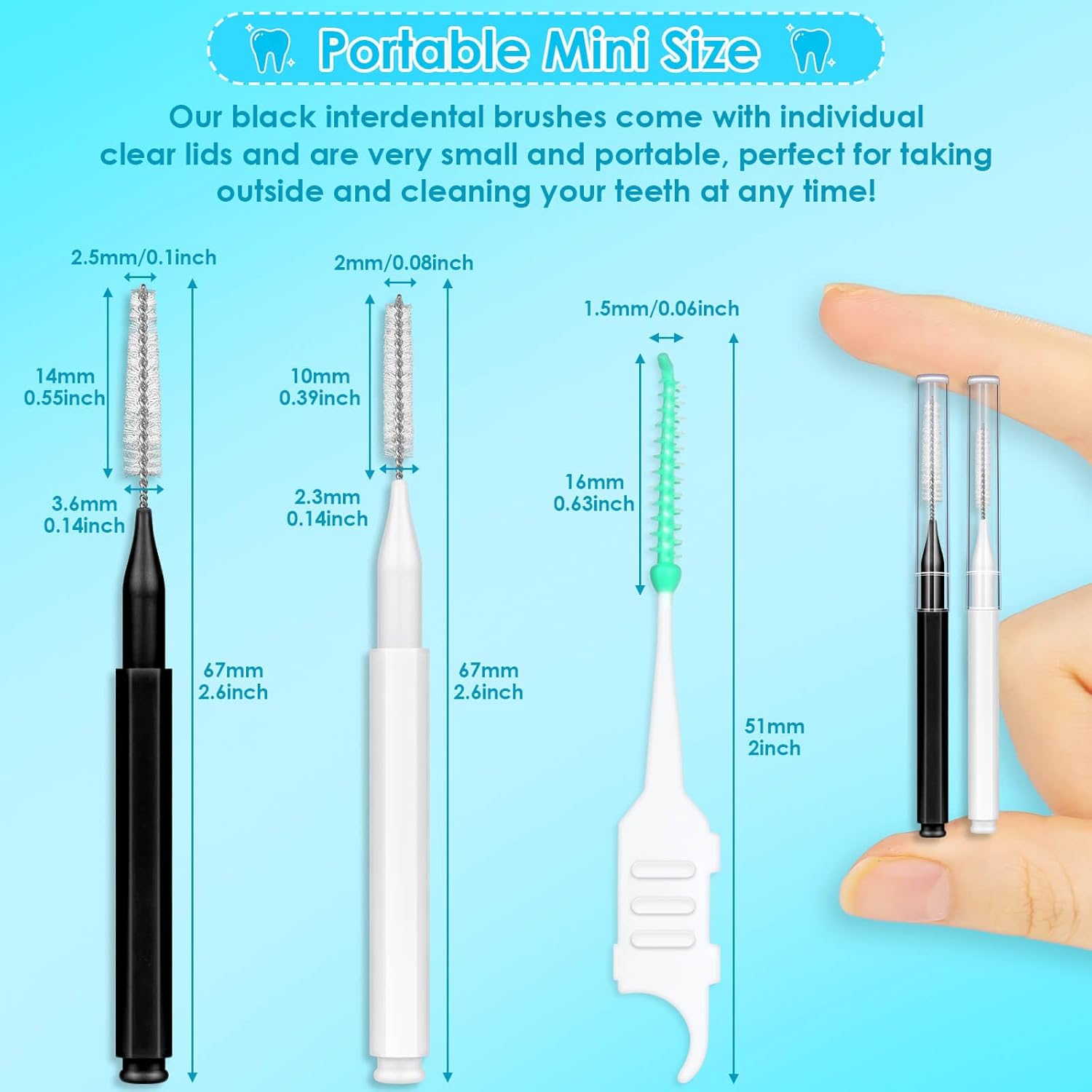 - Convenient to Carry: The interdental brush is mini and lightweight with a clear protective cover for easy storage and portability; perfect for home, travel, work, school and more; keep your teeth clean and white anytime, anywhere
