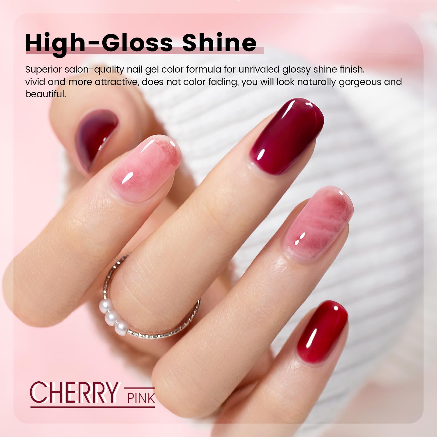 - AMBER JELLY COLOR SERIES:Our Nude Jelly Gel Nail Polish Set features six stunning shades, including pale pink, gray pink, nude apricot, purple pink ,wine red and cherry red, special for creating elegant French manicures or vibrant nail art.