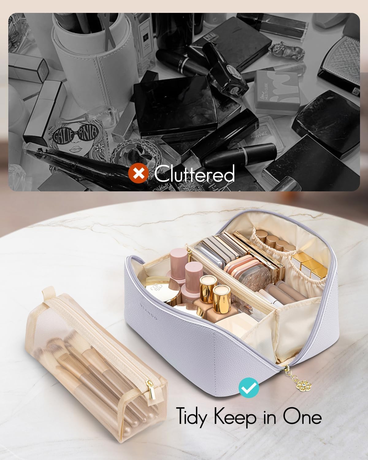 - Roomy & Portable: 9.1 x 4.8 x 4.7 inches (0.53lbs) offers ample space for cosmetics, brushes, and toiletries. Maximizes storage without cluttering luggage—ideal for travel,daily cosmetic organizer