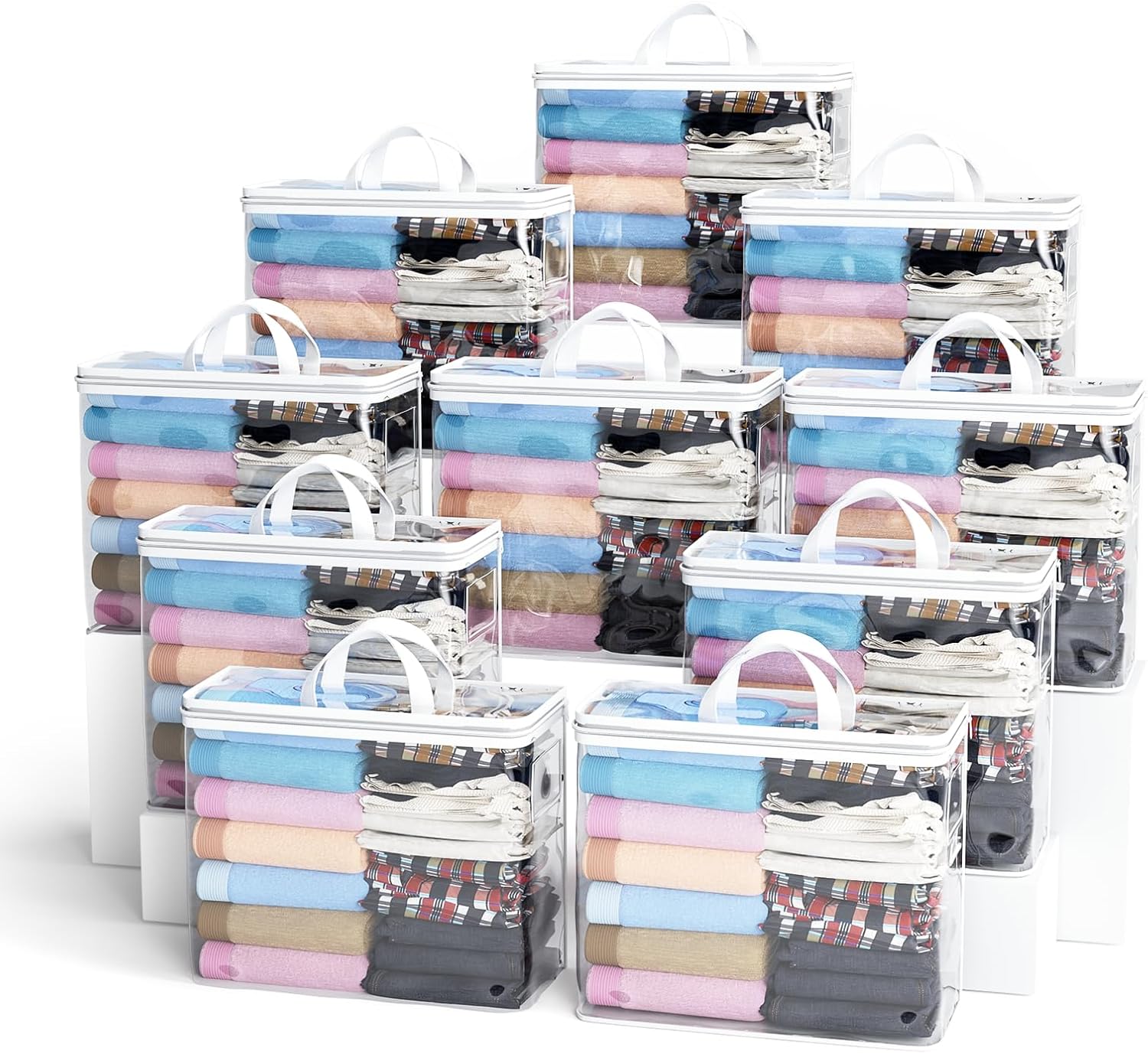 10PACK Clear Zippered Storage Bags for Clothes, 22L Closet Organizers Bag, and Blanket Storage Bags for Bedding, Linen, Blankets, Comforters, Clothing & Toys (White)
