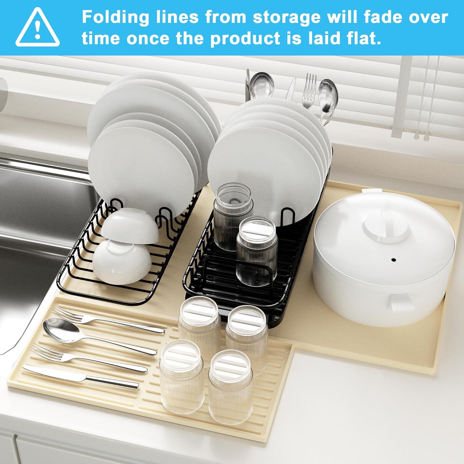 - 𝐄𝐚𝐬𝐲 𝐭𝐨 𝐂𝐥𝐞𝐚𝐧 𝐚𝐧𝐝 𝐒𝐭𝐨𝐫𝐞: The silicone mat is simple to clean—just wipe off spills or place it in the dishwasher. Its soft and flexible material allows for easy rolling or folding, saving space in your kitchen. This dish drainer for kitchen counter is a essential item for first apartment can also be used as a drawer liner or a cabinet liner, also a good pet feeding mat.