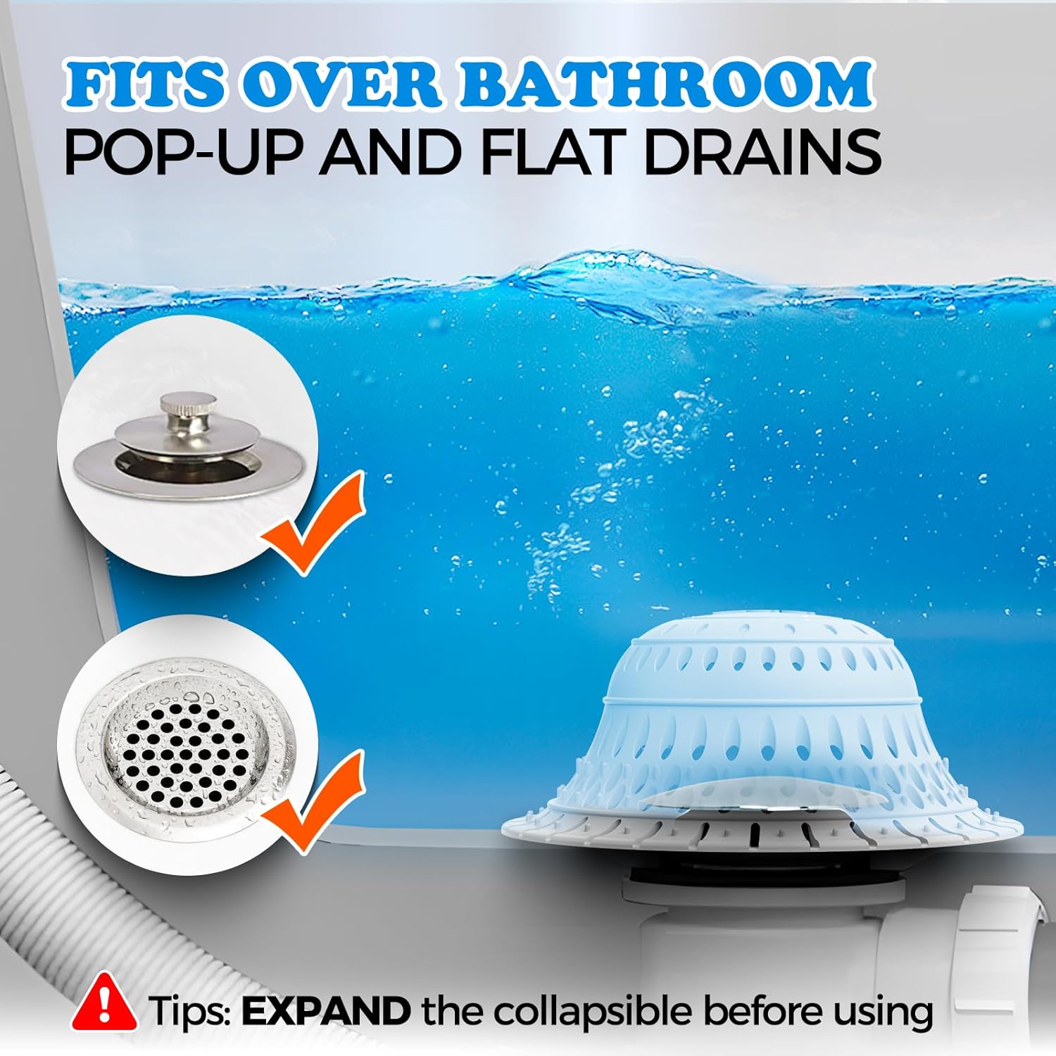 - 【Bathtub Drain Protector】Tall, dome shaped and collapsible design Bathtub Drain Hair Catcher, works well with flat and pop-up drains of bathtub, tub, shower, bathroom. The size of 4.5" diameter fits most standard drains. No need to use tools to install.