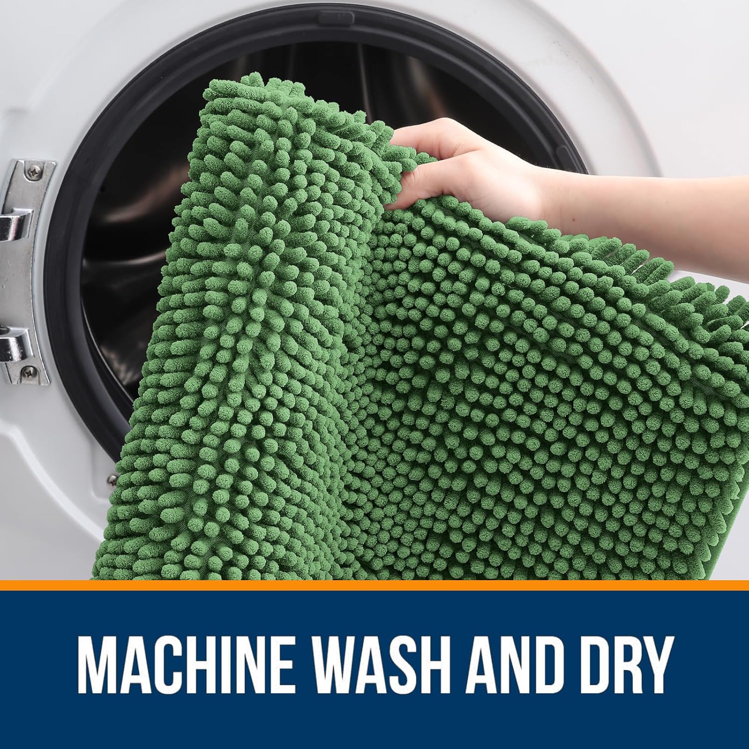 OLANLY Bathroom Rugs 70x24, Extra Soft Absorbent Chenille Bath Rugs, Rubber Backing Quick Dry, Machine Washable Bath Mats for Bathroom Floor, Tub and Shower, Home Decor Accessories, Olive Green
