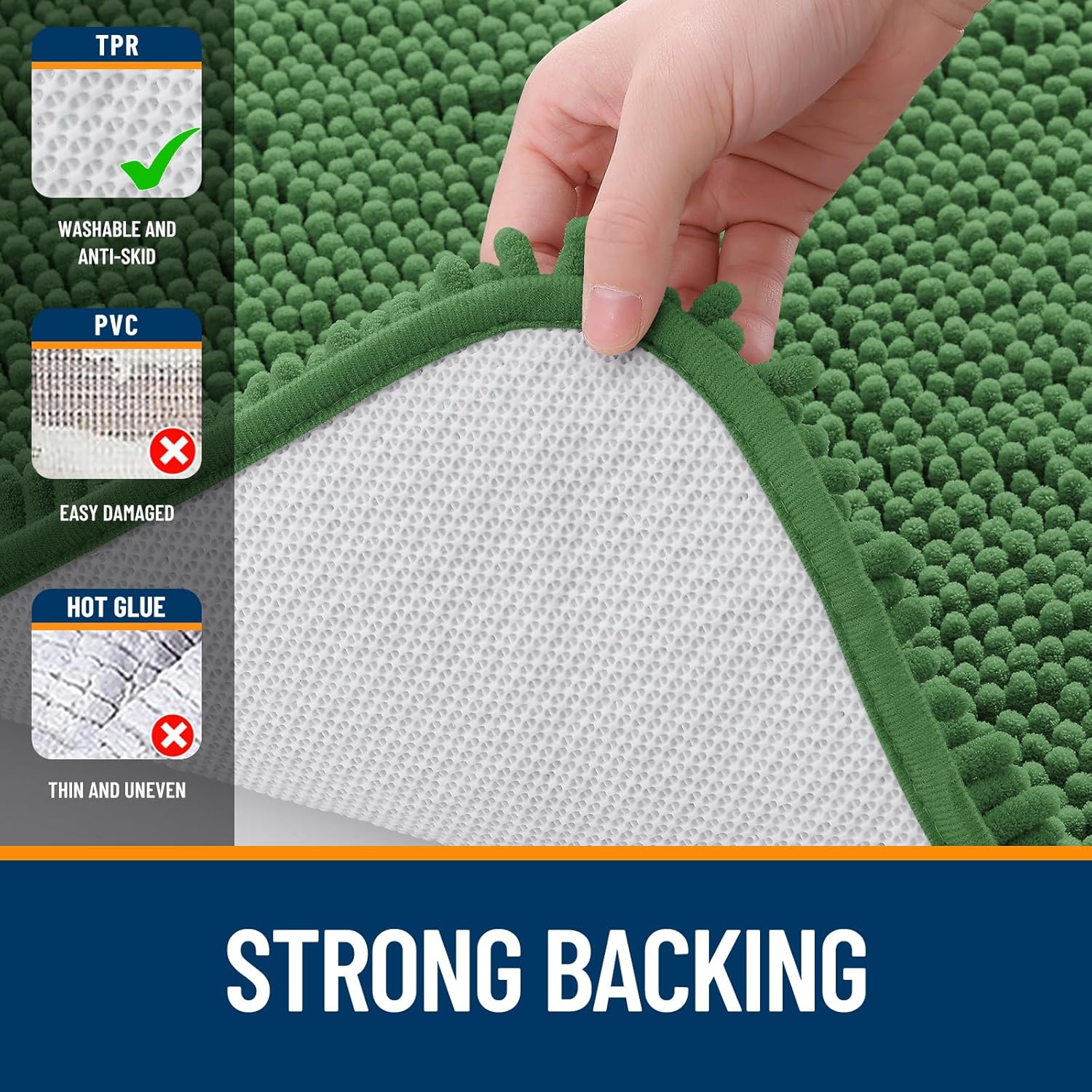 OLANLY Bathroom Rugs 47x20, Extra Soft Absorbent Chenille Bath Rugs, Rubber Backing Quick Dry, Machine Washable Bath Mats for Bathroom Floor, Tub and Shower, Home Decor Accessories, Olive Green