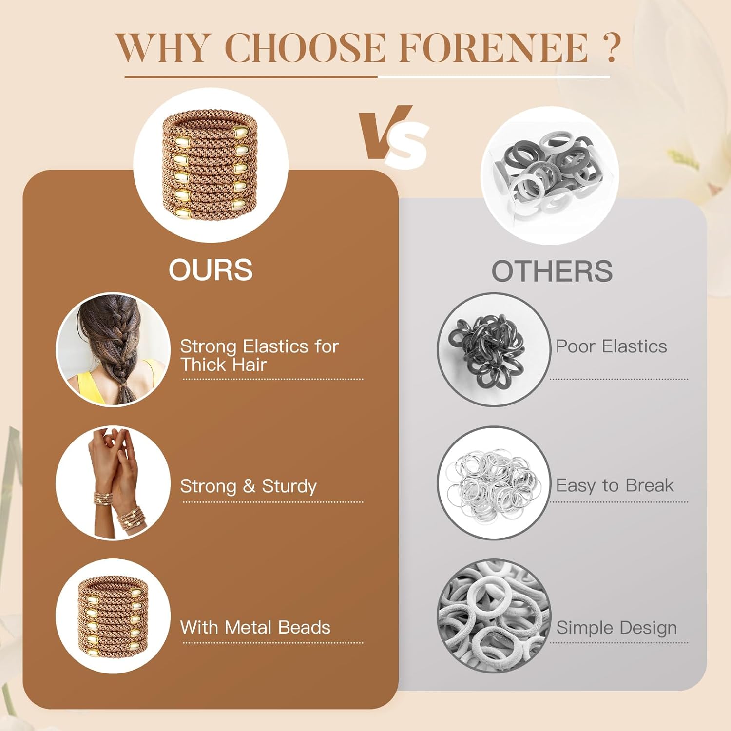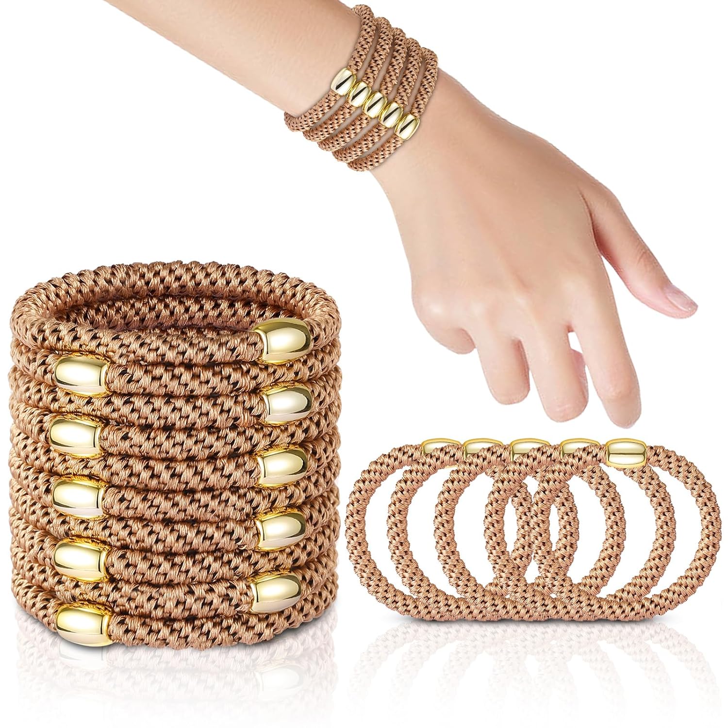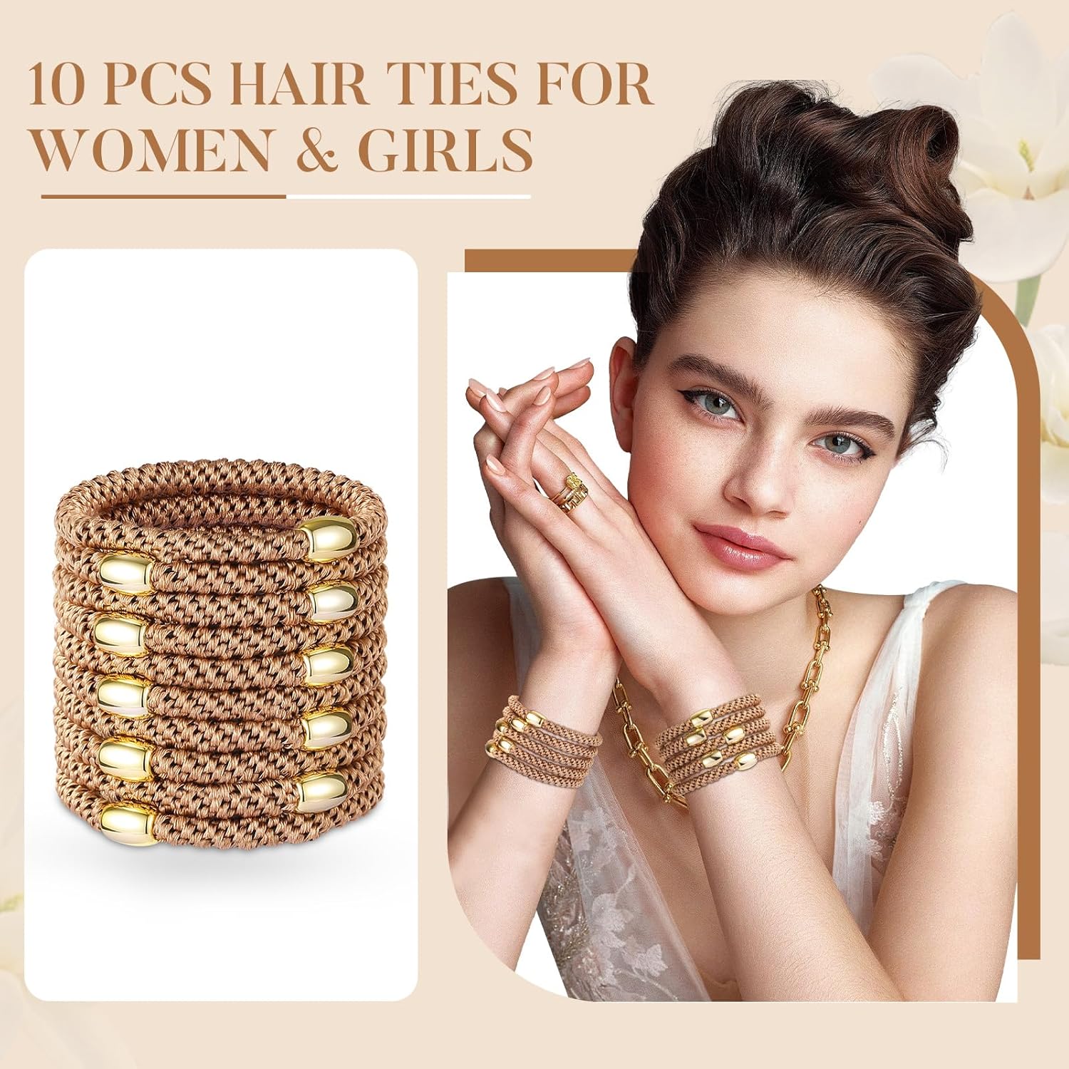 - 【Fashionable Ponytail Holders】Available in a set of 10 pony tails hair ties for women and girls with thick hair for daily use. Adorned with stylish gold decorative beads, these bands add an elegant touch, boosting your hair game with confidence.